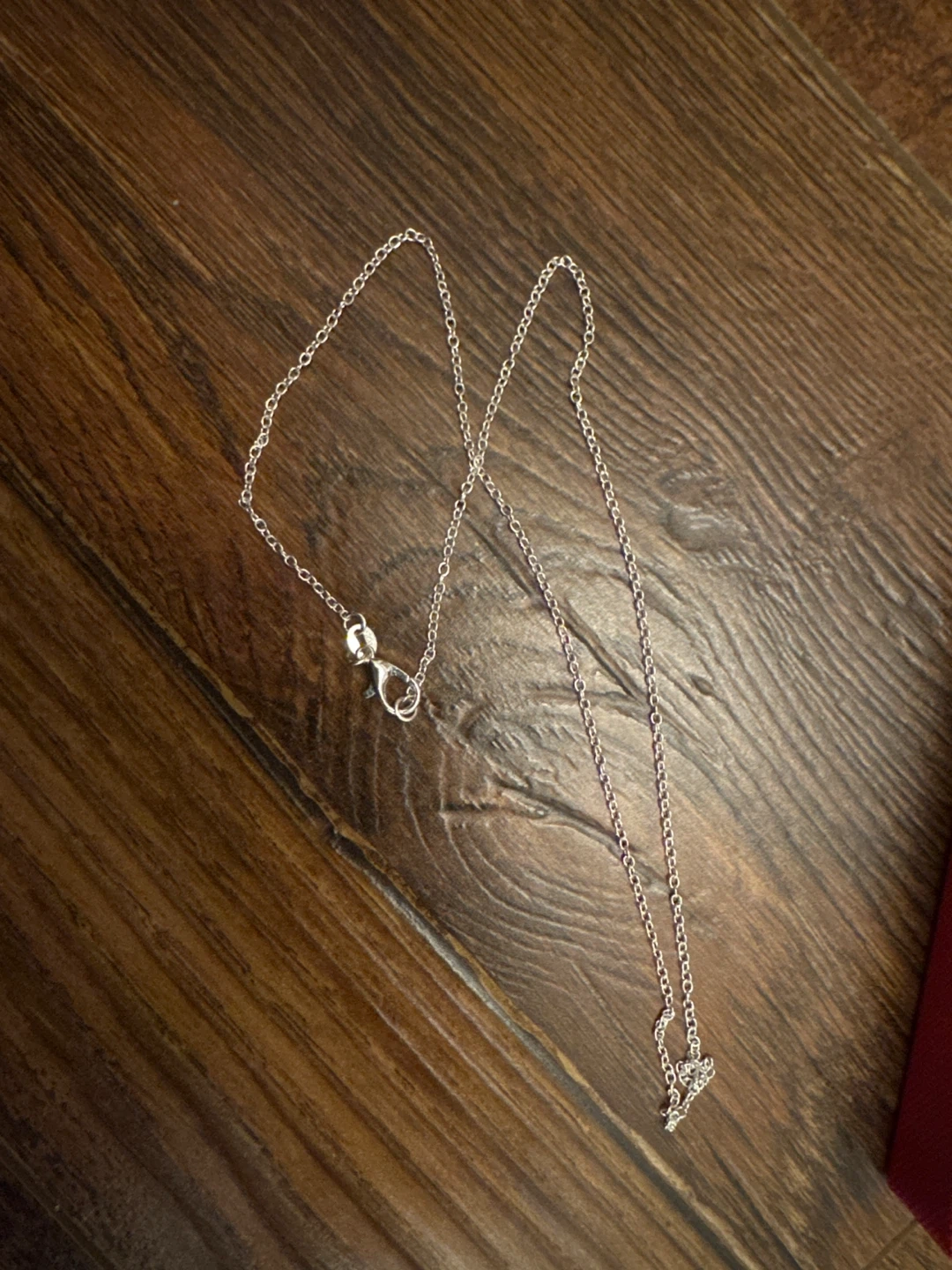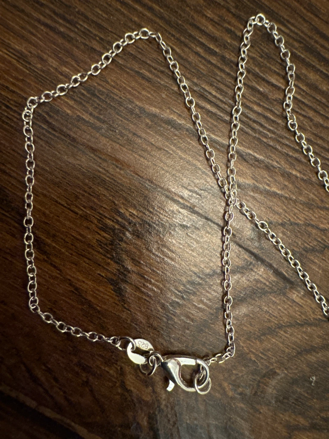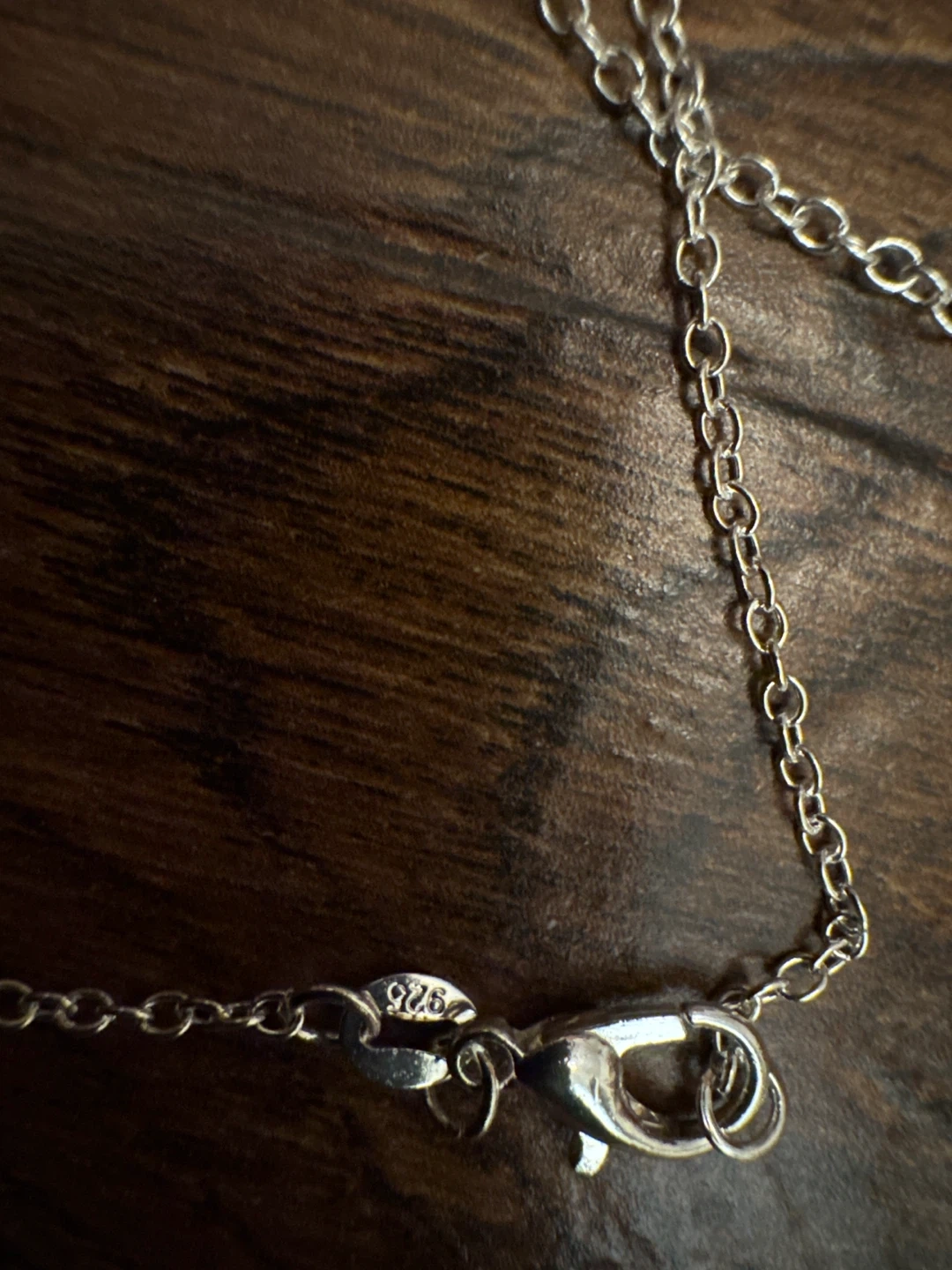 Selling a delicate sterling silver chain necklace. It's marked with '925', indicating its silver purity. Perfect for adding a subtle touch of elegance to any outfit!