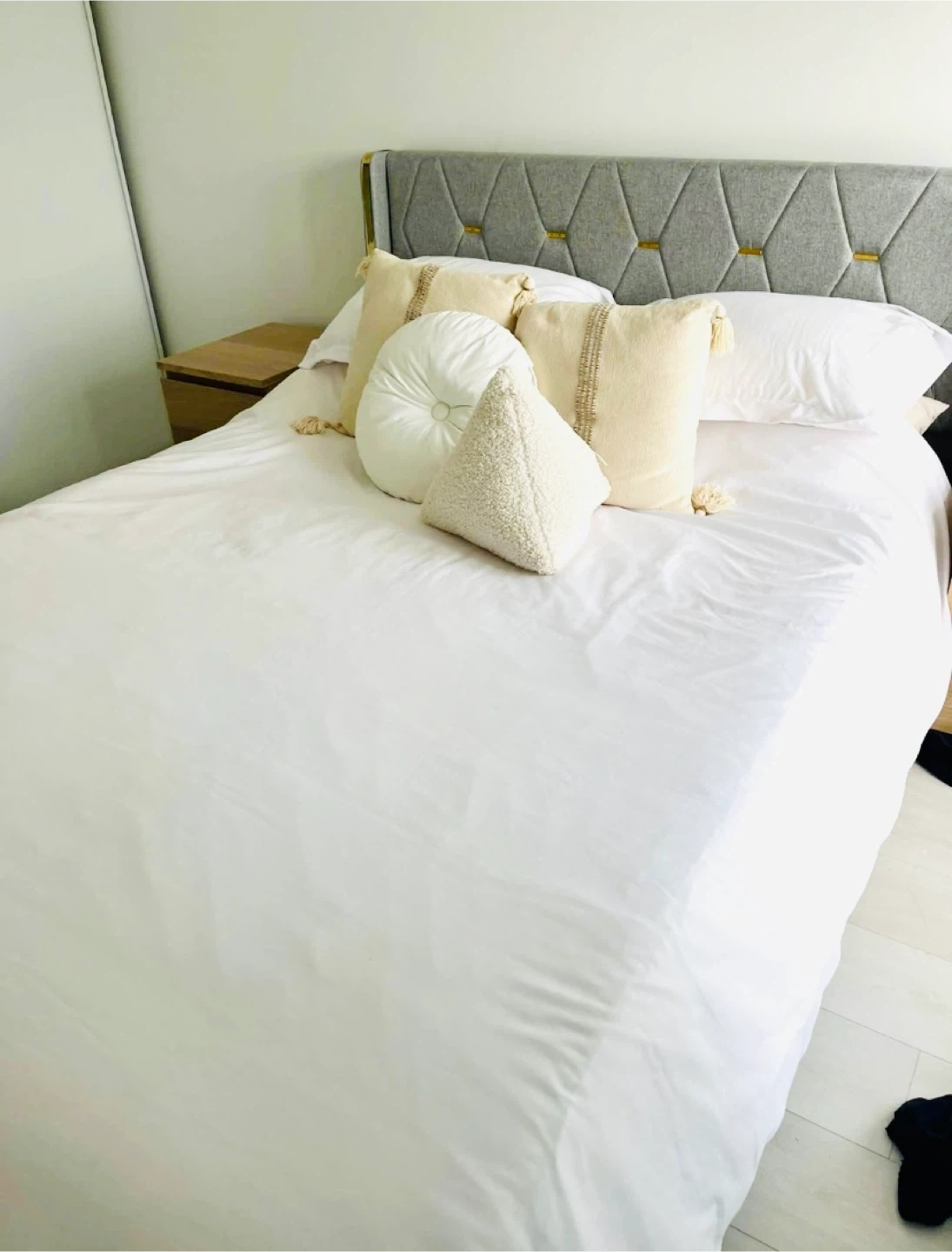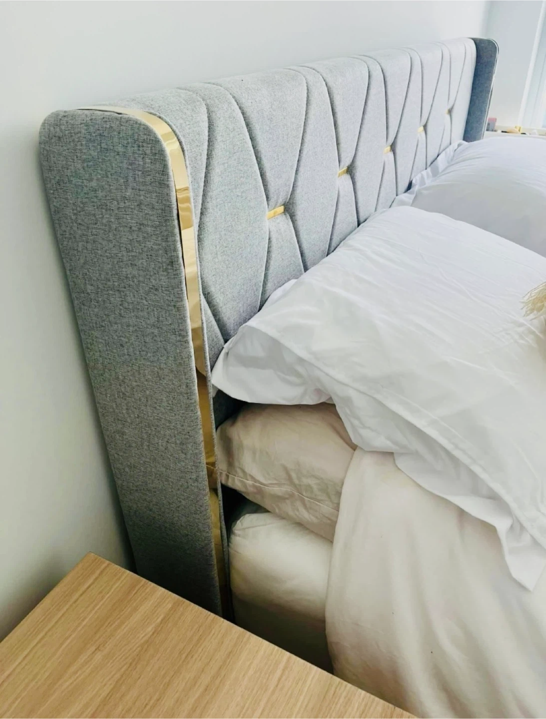 Grey fabric bed frame with storage -Queen size