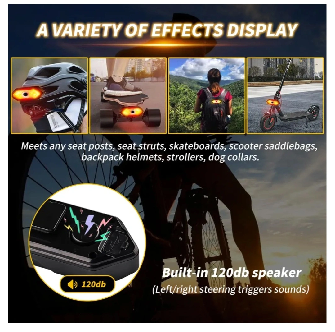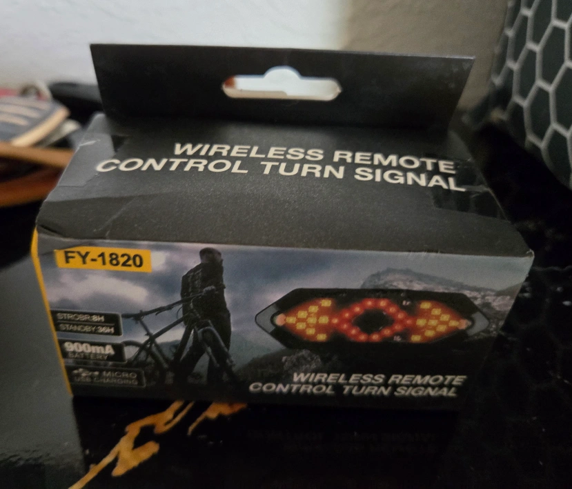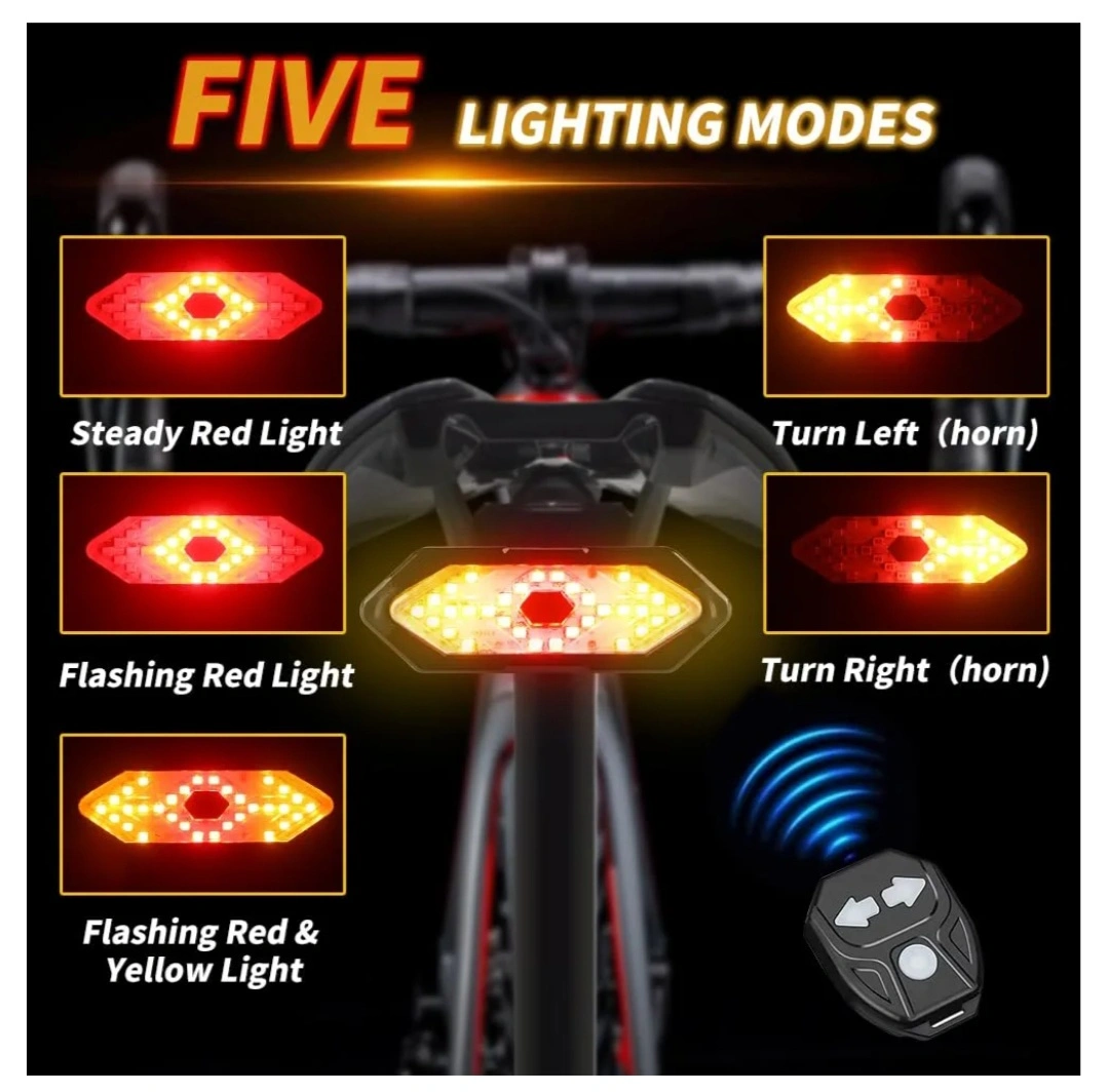 Brand new Wireless Remote Control Turn Signal, model, still in its original box! It features five lighting modes, including steady red light, flashing red light, and turn signals with horn sounds. The remote control makes it easy to switch between modes while you're riding. Includes the light, remote, mounting accessories, and a micro USB charging cable