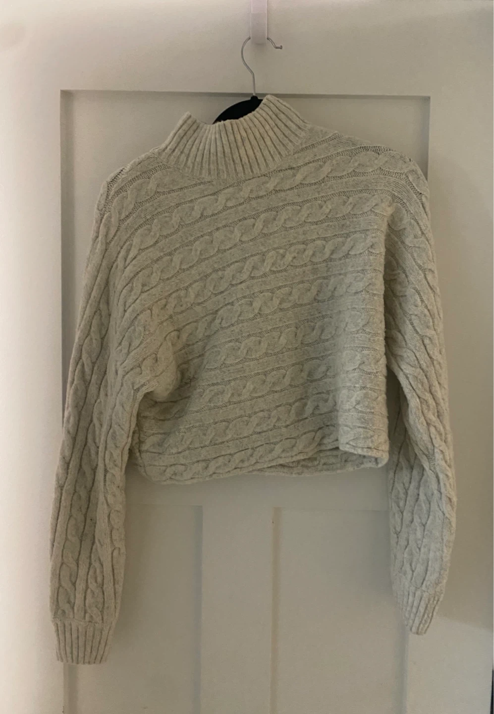 Selling a New Look cable knit sweater in size small! It's a lovely neutral colour and in great condition. Perfect for layering or wearing on its own! Turtle neck with cropped design.