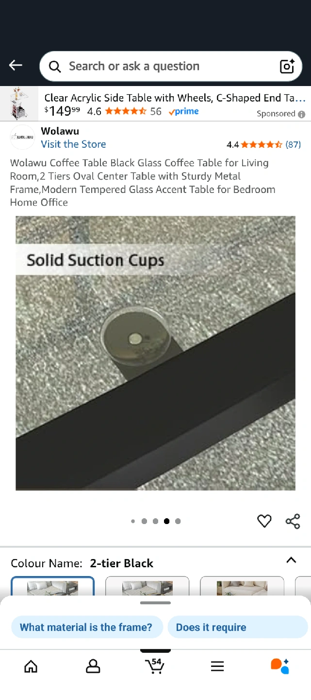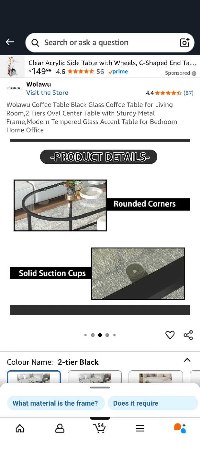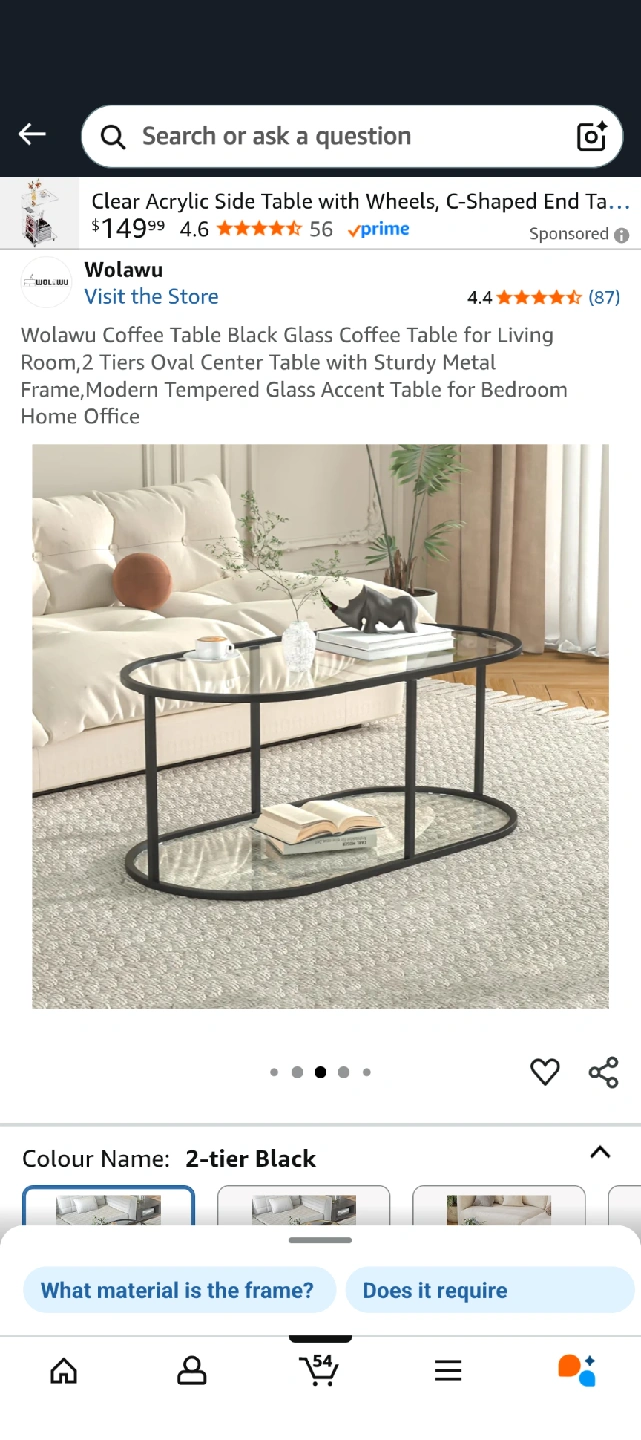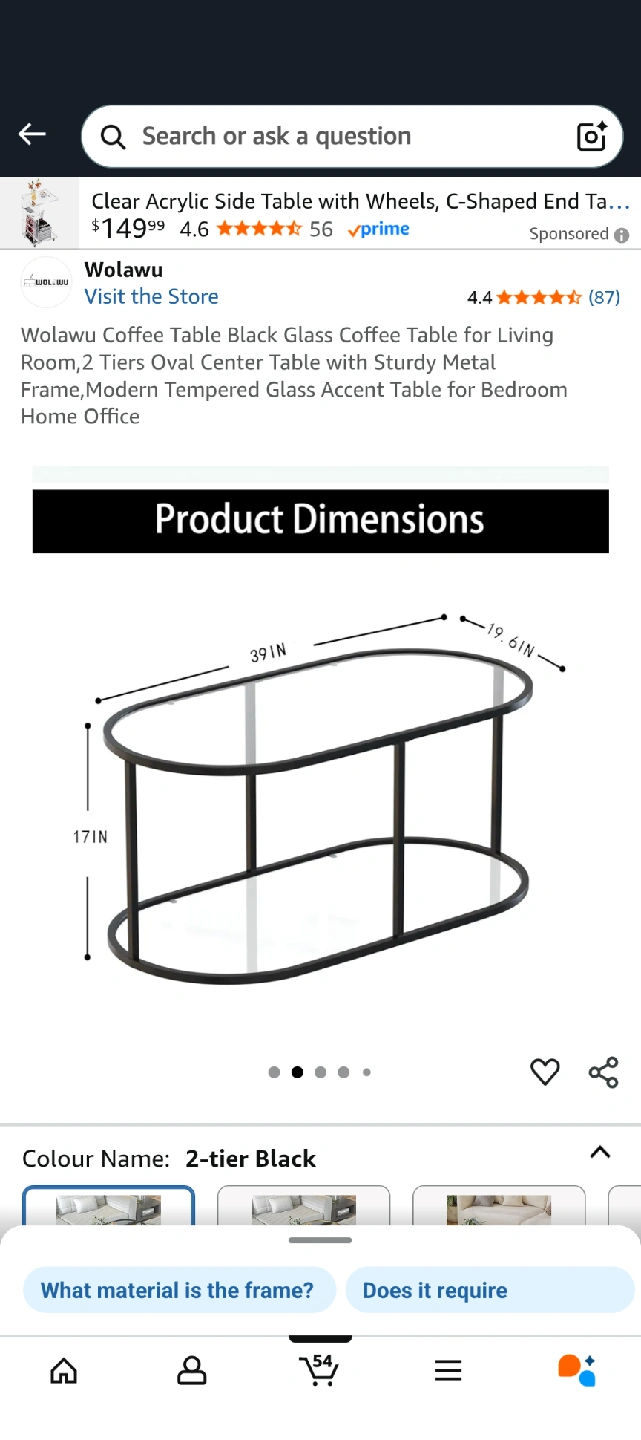 Selling a Wolawu coffee table in black! This table has a sleek, modern look with a 2-tier oval design. It's perfect for a living room or home office. The dimensions are 39 inches x 19.6 inches x 17 inches. It features a high-quality tempered glass tabletop and a sturdy metal frame with rounded corners and solid suction cups.