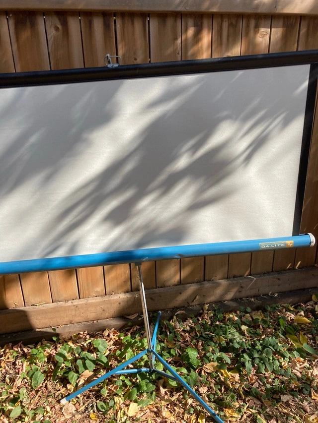 Enhance your viewing experience with this used DA-LITE Flyer projector screen, featuring a portable design and easy setup for on-the-go presentations or movie nights. Specifications: * Brand: DA-LITE * Model: Flyer * Type: Portable Tripod Projector Screen * Condition: Used, in good working condition. If the ad's still up, the screen's still available!