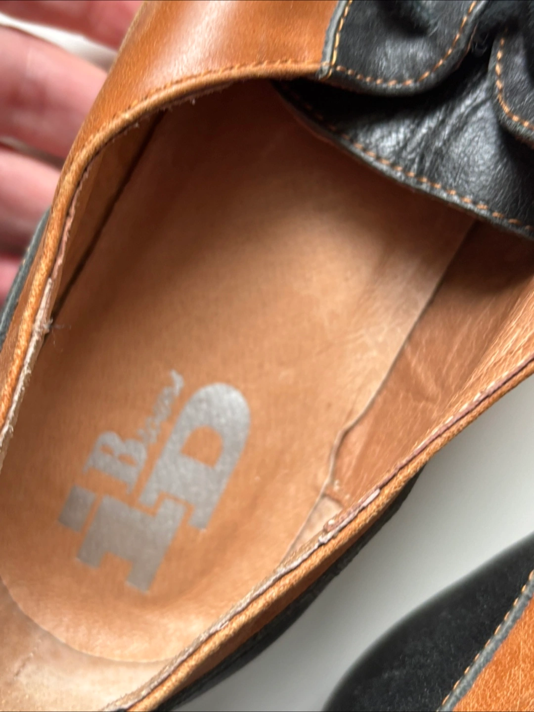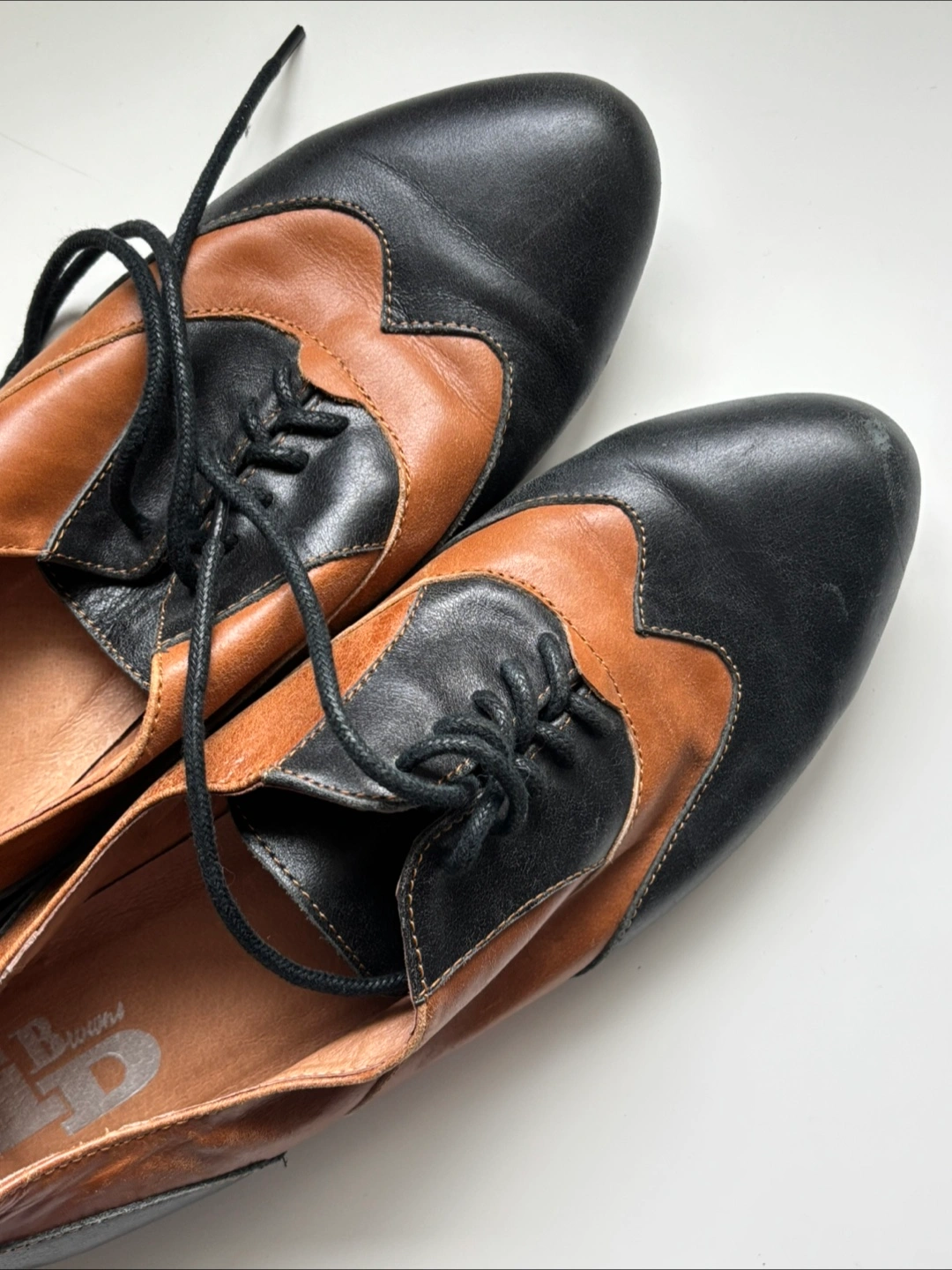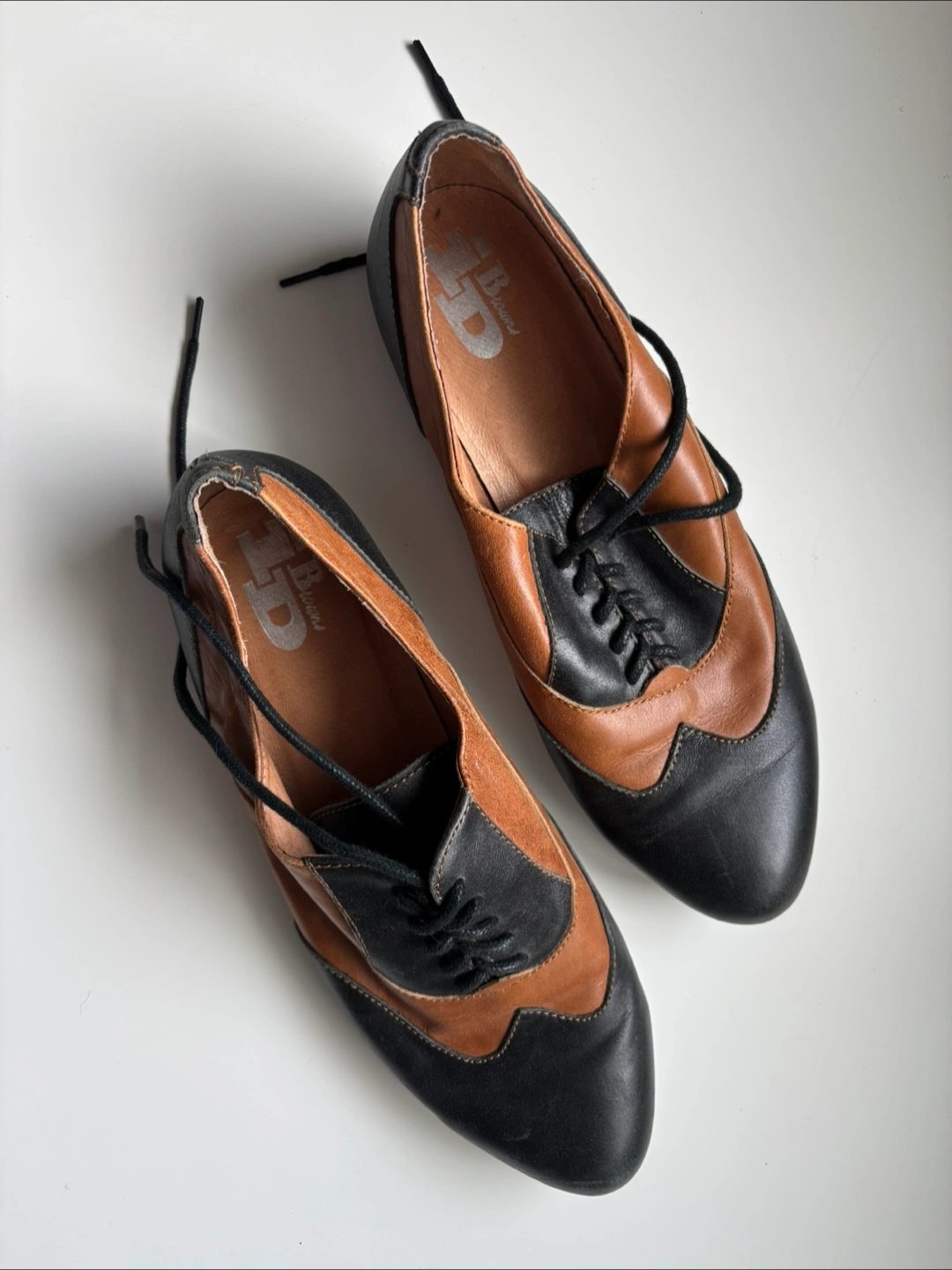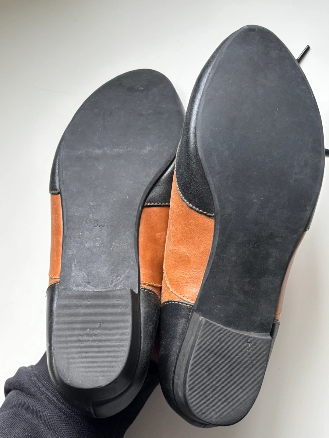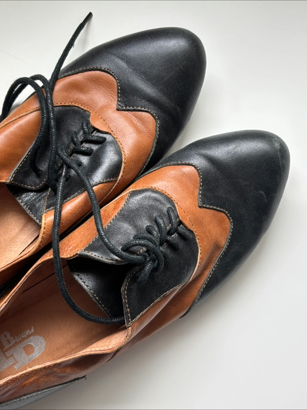 Selling a pair of Browns oxfords in size 8.5! These have a stylish two-tone design, featuring black and tan leather. They're in good condition and ready for a new home