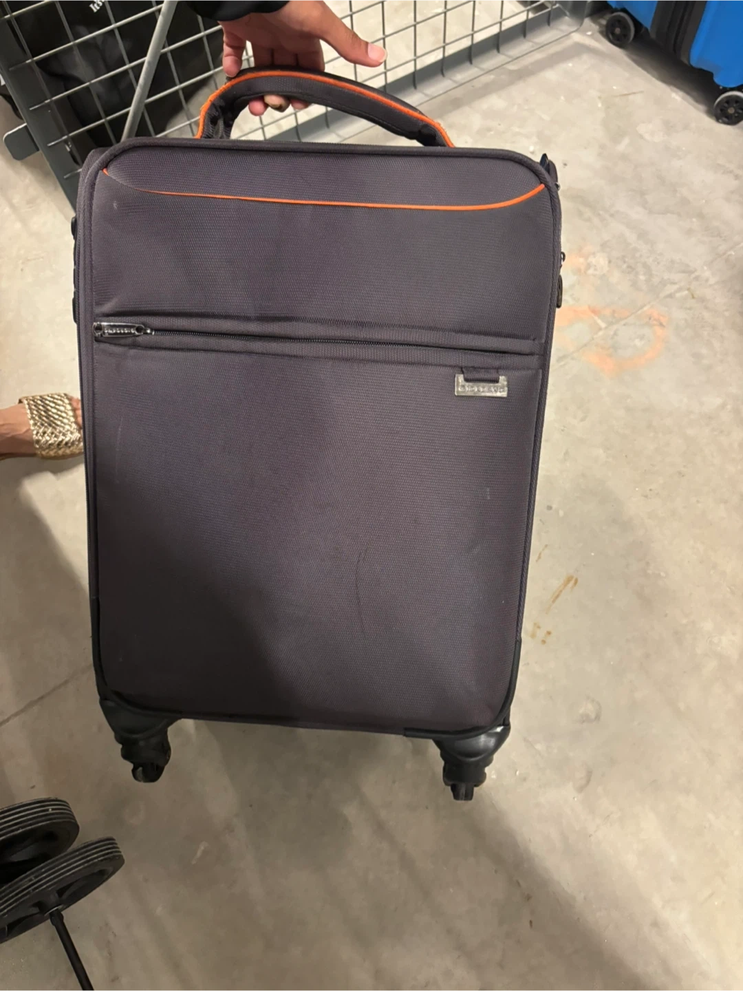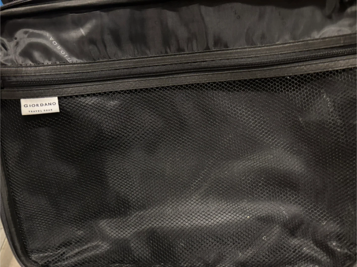 Giordano rolling suitcase in good condition, ready for your next trip! It has a retractable handle and wheels for easy transport. The interior is spacious with a mesh pocket for organization. There are some signs of use, but it's still fully functional and reliable