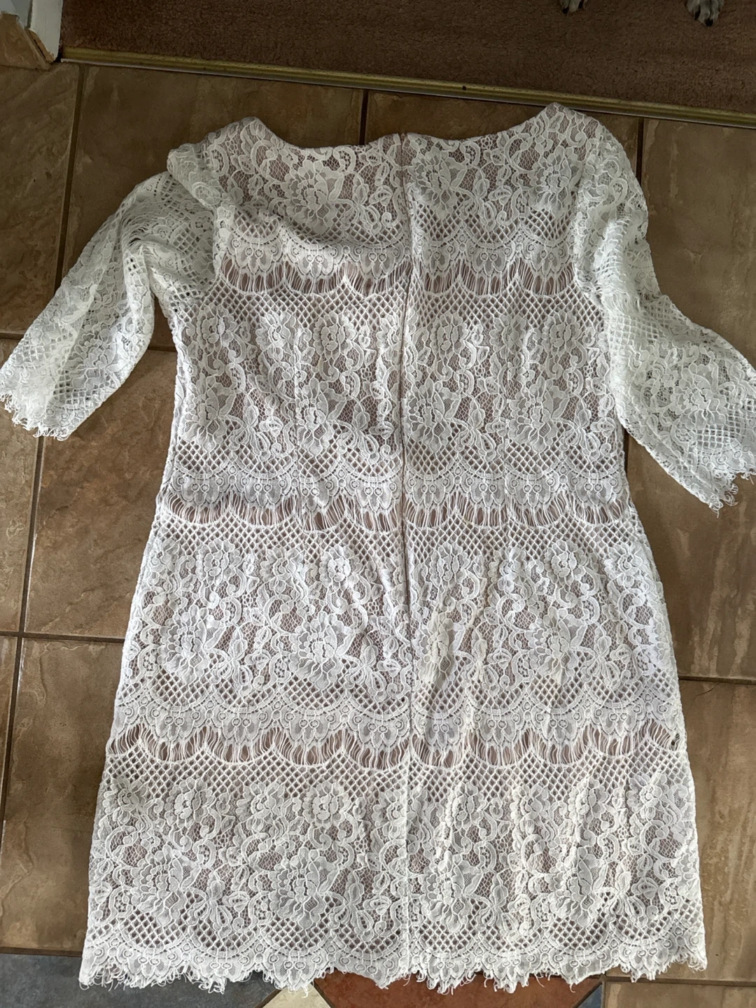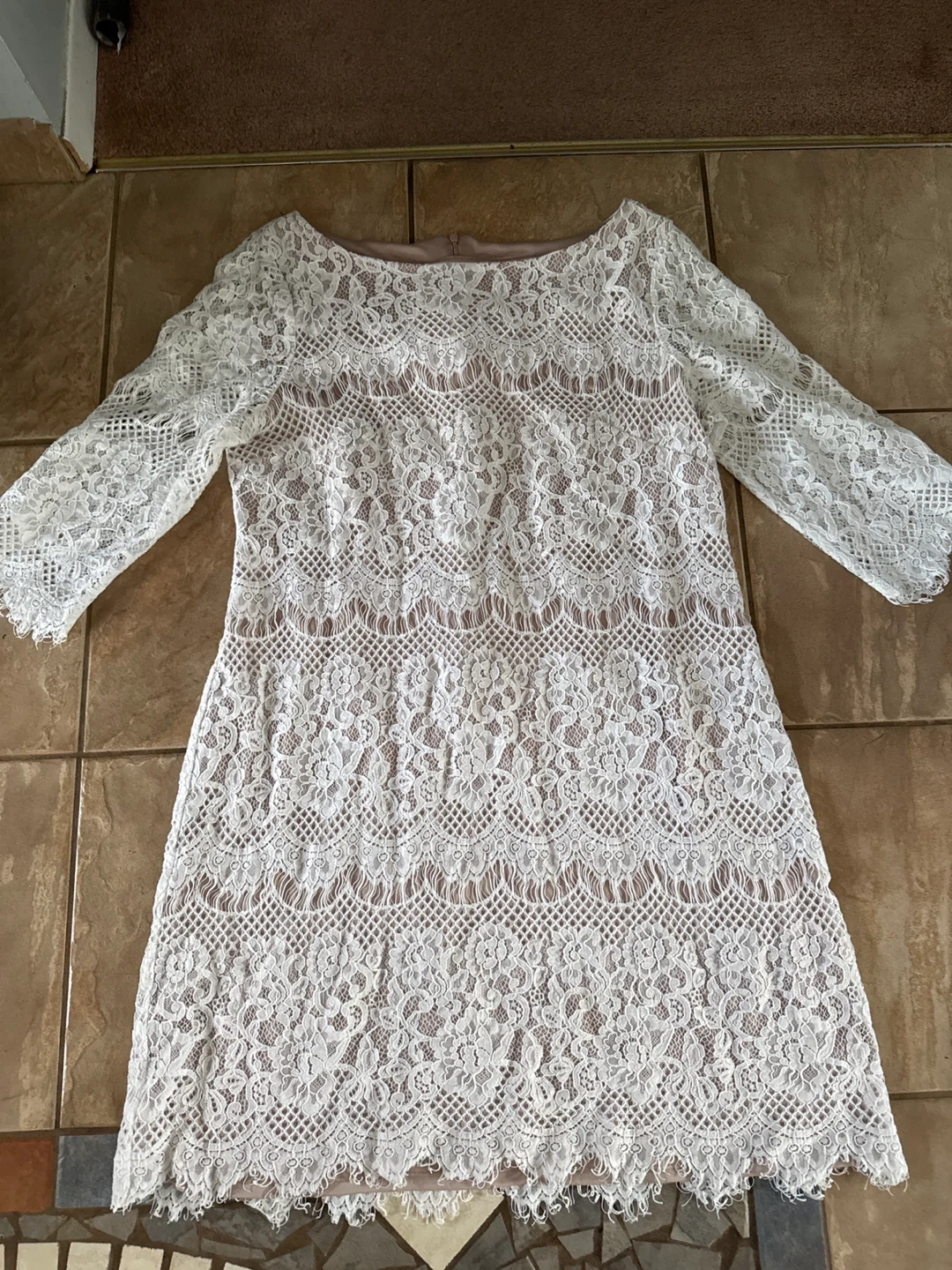 Selling a beautiful Eliza J lace dress in size 16! It's a lovely cream/off-white colour and features delicate lace detailing throughout. Perfect for a special occasion or a night out