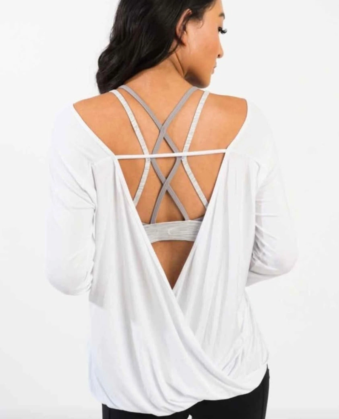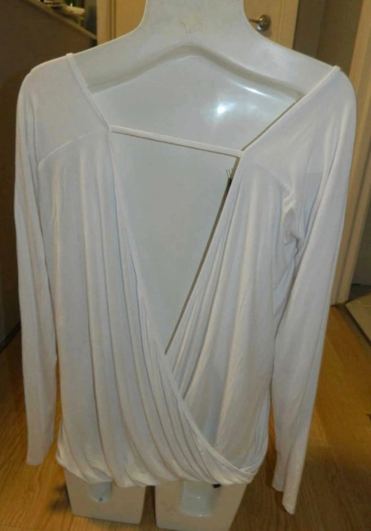 Selling a ZYIA white twist back long sleeve top. It's nwt and ready for a new home! It's perfect for workouts or casual wear, with a stylish twist back design that adds a touch of flair NEW WITH TAGS ZYIA NAMASTE LONG SLEEVE(PIC IS OF BACK)..SIZE M