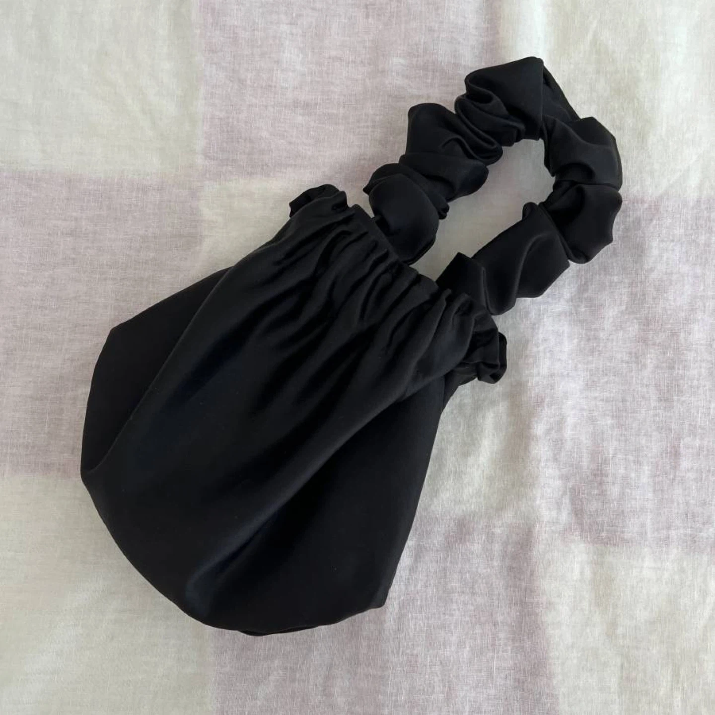 39A Bronze Age Black Silky Halo Mini Satin Scrunchie Evening Purse In like new condition, used twice. No signs of wear. Super cute and fun design. Can surprisingly fit a lot, fits a phone! Made in Canada Dimensions: 10" L x 12" H (including handle) Pick up in Vancouver Ganni APC Sezane Staud Cecilie Bahnsen Simone Rocha Paloma Wool Sandy Liang Reformation Rouje Sandro Maryam Nassir Zadeh Isabel Marant Everlane Madewell Bode Studio Nicholson Toteme The Row Gimaguas Glossier Ciao Lucia Doen Sea New York Djerf Avenue Deiji Studios Rachel Comey Acne Studios Simon Miller The Frankie Shop One of a Few SSENSE Cult Gaia Jacquemus By Far