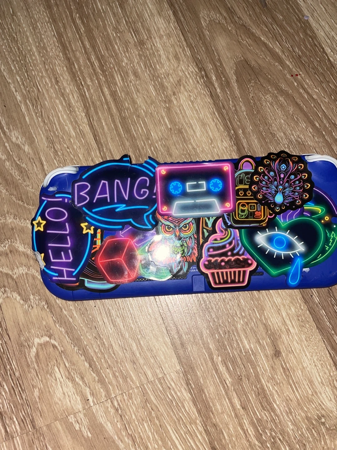 Selling a blue Nintendo Switch Lite. It has some stickers on the back but is in good condition otherwise. Perfect for gaming on the go!