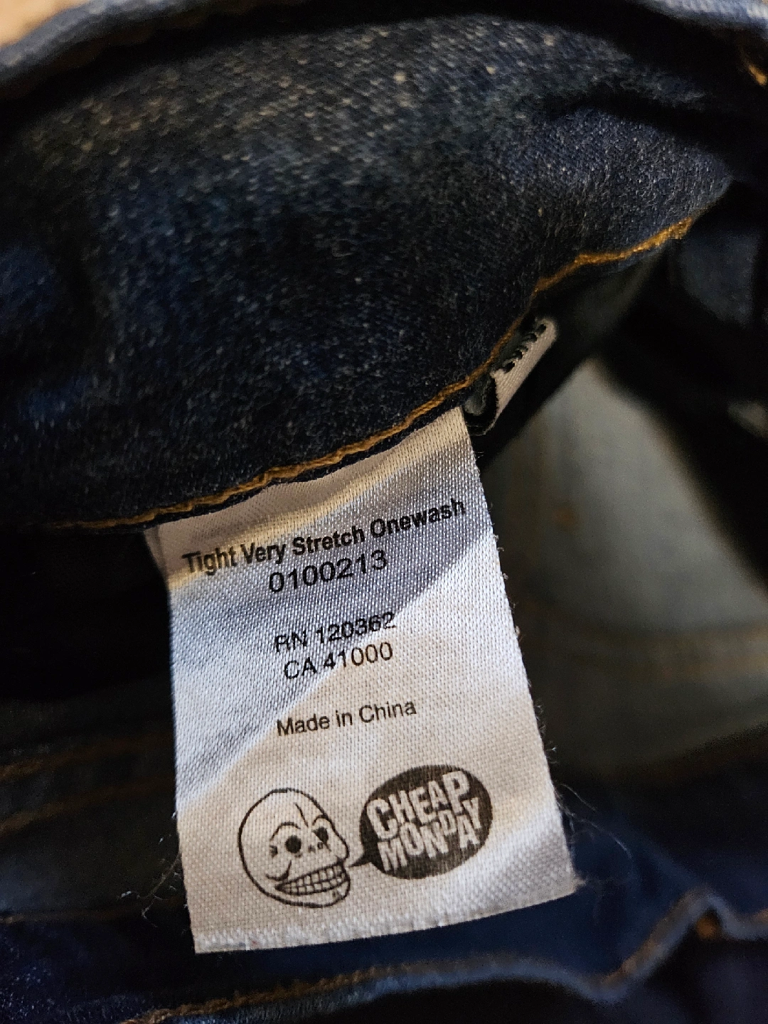 The other pair is Cheap Monday, size 25 with the "Tight Very Stretch Onewash" style.