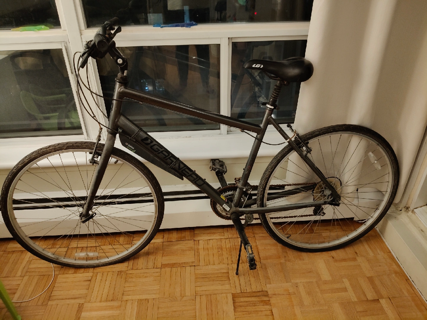 Selling a grey Garneau bike with gears! It has a Shimano V-Brake. It's ready for a new home and some great rides around town. just the tyres need to be inflated.
