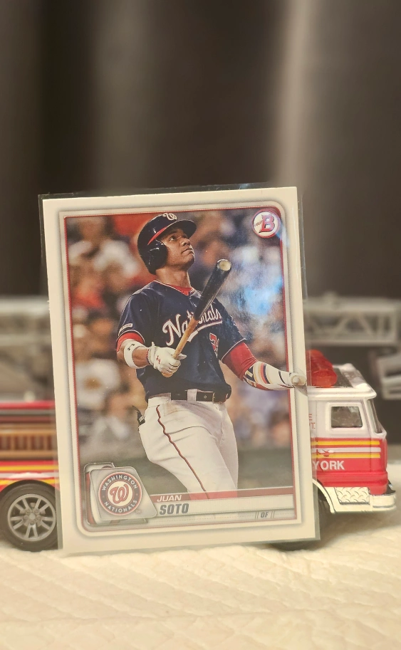 Selling a Juan Soto baseball card. He is a Washington National and his height is 6'1". He bats and throws left. He was born in Santo Domingo. He hit his decisive HR in Game 6 of the 2019 World Series. He played in 287 games with Washington Nationals.