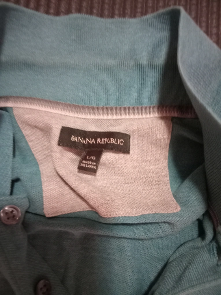 277Here's a Banana Republic polo shirt in size large. It's a nice teal colour and in great condition. The material is soft and comfortable, perfect for everyday wear!