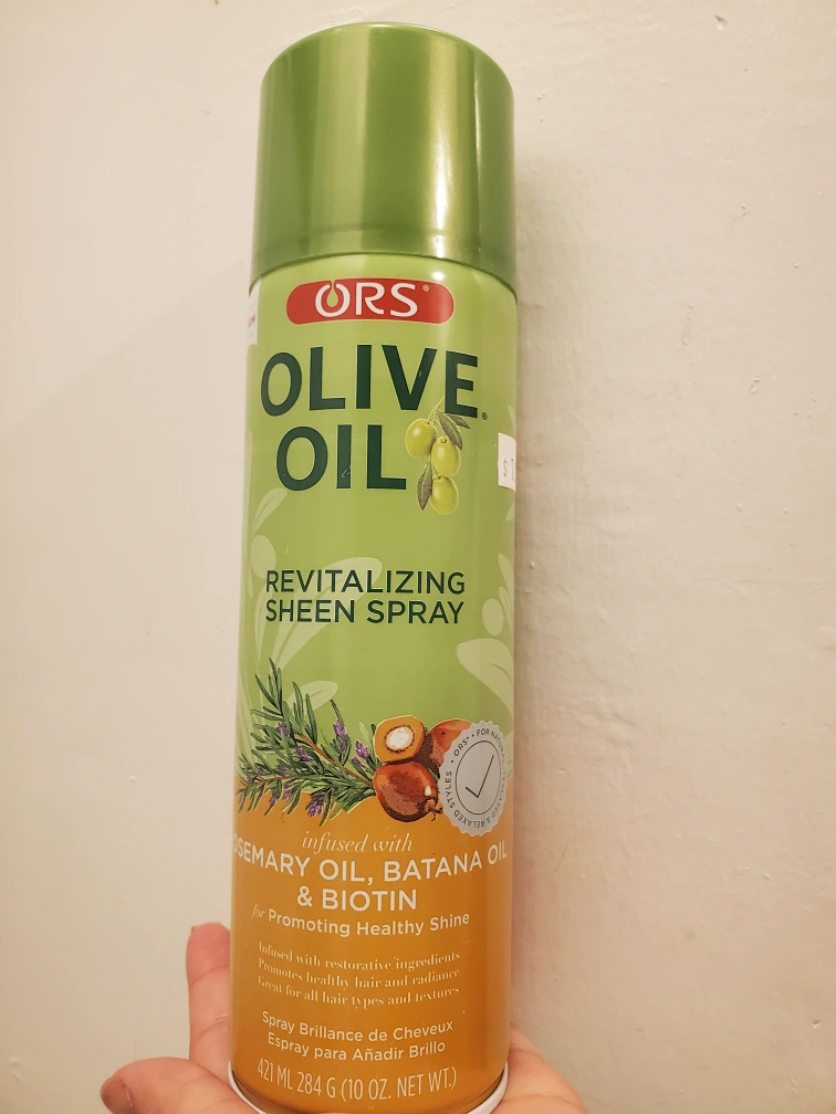 91I'm selling ORS Olive Oil Revitalizing Sheen Spray! It's infused with rosemary oil, batana oil, and biotin for promoting healthy shine. This spray is great for all hair types and textures and comes in a 421 mL (10 oz) bottle
