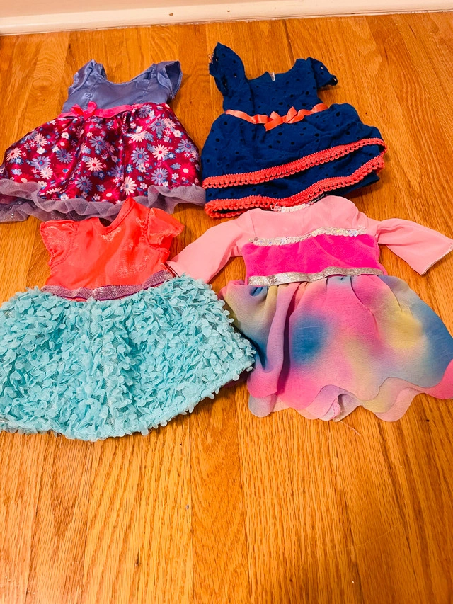 These adorable doll clothes are designed to fit 18-inch dolls, perfect for dressing up your child's favourite companions. This lot of used doll clothes are in great condition and ready for a new home. The dresses are colourful, well-maintained, and ready for imaginative play. Would make a great birthday or Christmas gift for a child. Here are some details about the doll clothes: * Variety of styles included * Designed for 18-inch dolls * Vibrant colours * Good condition (used)
