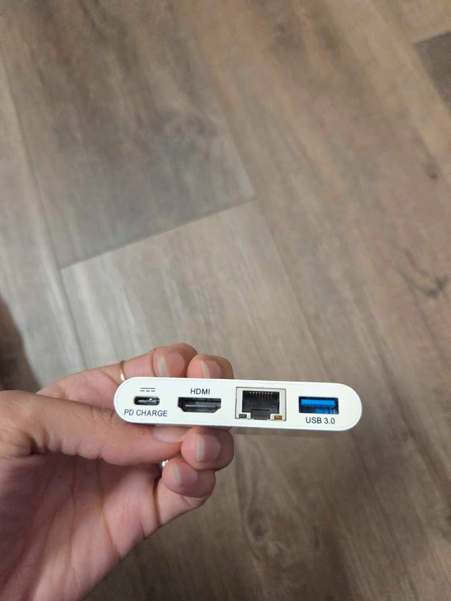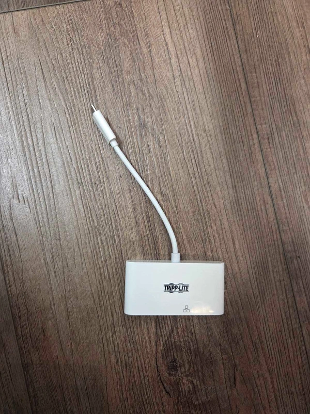 This is a used Tripp Lite USB-C multiport adapter, equipped with ports for HDMI, USB 3.0, and Ethernet, along with a USB-C power delivery (PD) charging port. It's perfect for expanding the connectivity of your laptop or tablet! * Ports: HDMI, USB 3.0, Ethernet, USB-C (PD Charging) * Brand: Tripp Lite * Colour: White Asking $80. All my items come from a smoke-free home. If you're seeing this ad, then yes, it's still available!