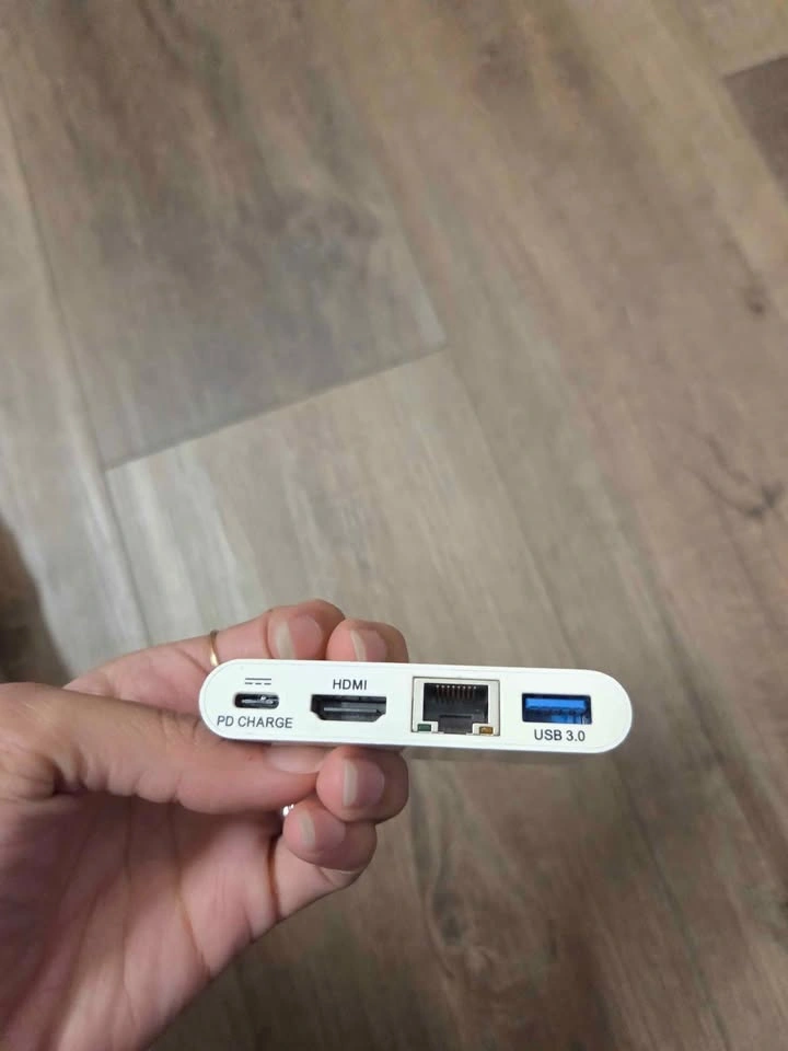 Tripp Lite USB-C multiport adapter, equipped with ports for HDMI, USB 3.0, and Ethernet, along with a USB-C power delivery (PD) charging port. It's perfect for expanding the connectivity of your laptop or tablet! * Ports: HDMI, USB 3.0, Ethernet, USB-C (PD Charging) * Brand: Tripp Lite * Colour: White