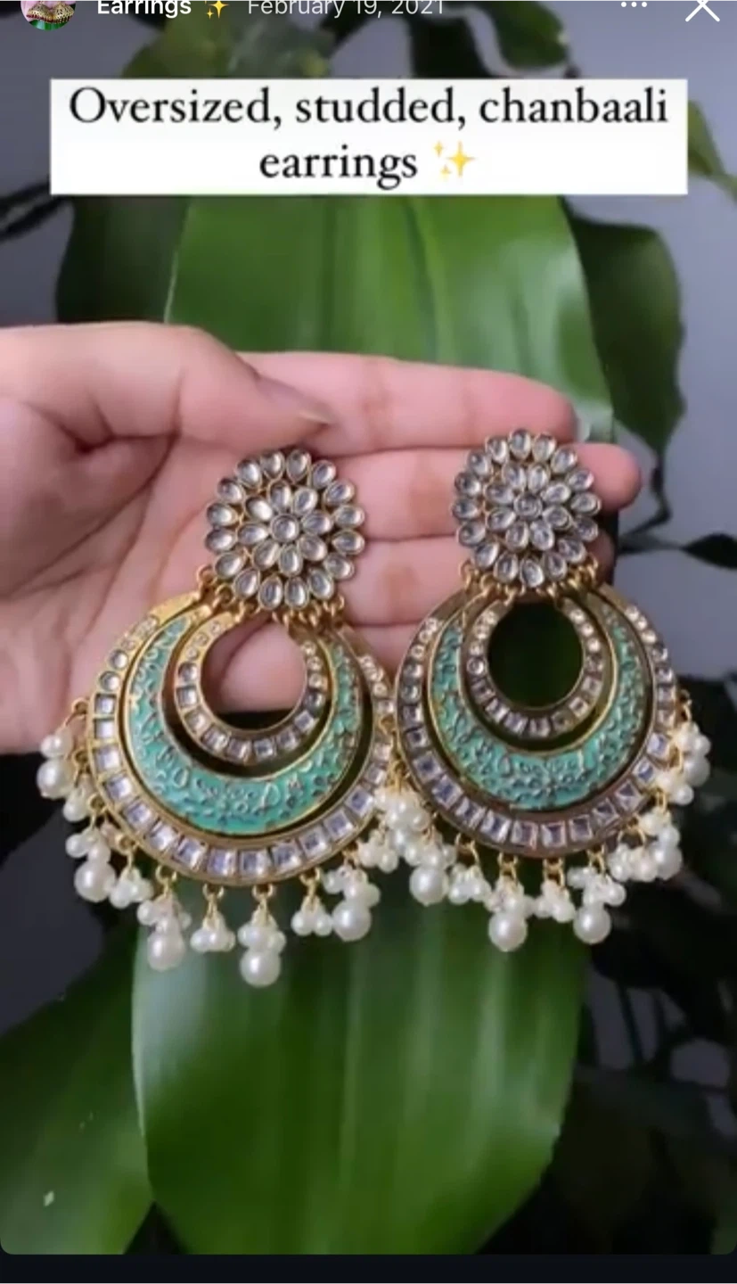 Selling a collection of Desi earrings. Many designs and colours available including jhumkas, chandbaali earrings, meenakari earrings, studs, etc…. Message for prices and more designs. I’m selling them at a whole sale rate for very cheap. Please check out my other listings as well! :)