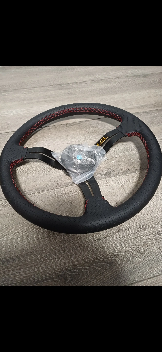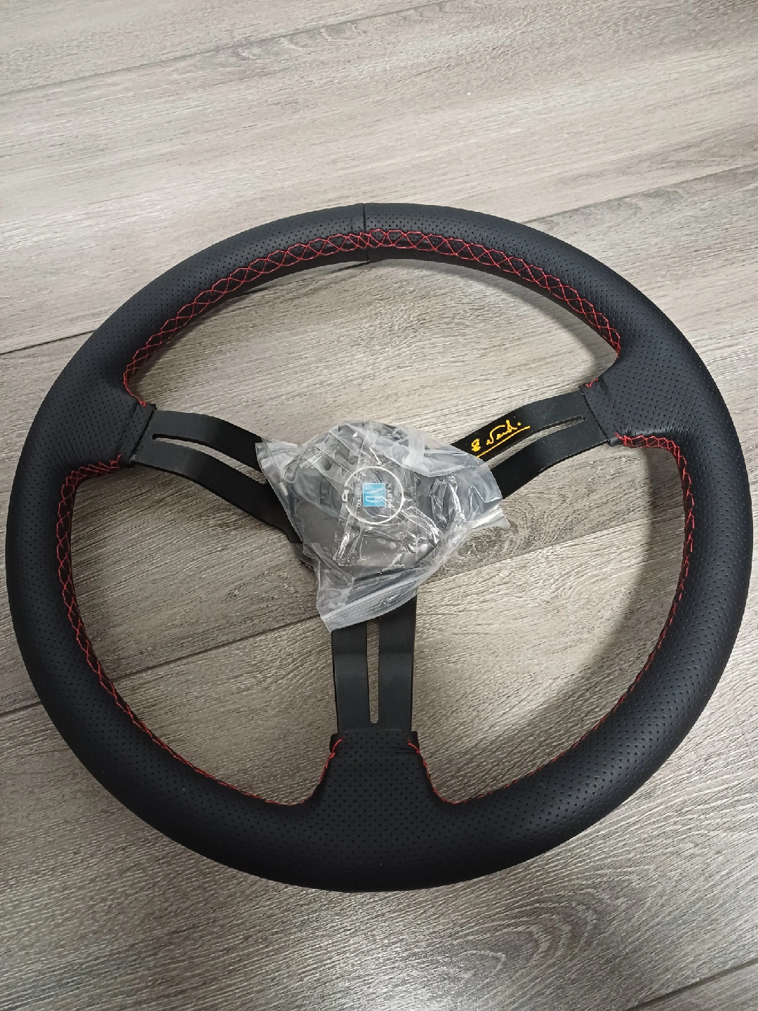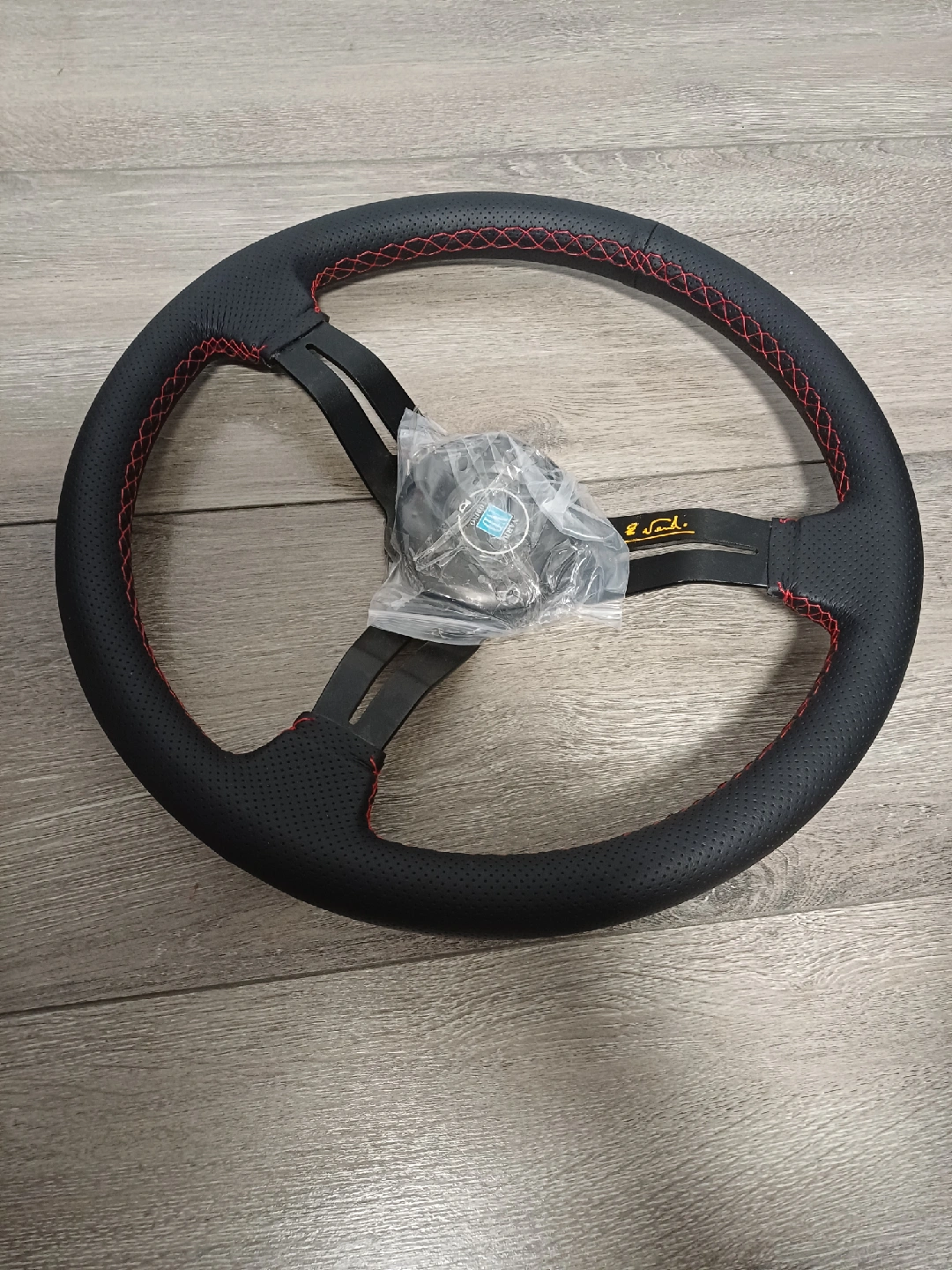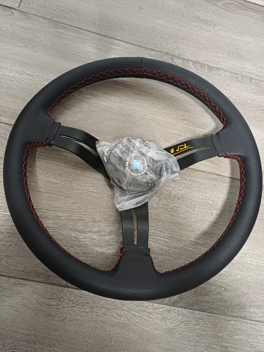 96Selling a brand new... Nardi Torino Universal fit steering wheel in great condition! It features black leather with red stitching, giving it a sporty and stylish look. The steering wheel is in excellent shape and ready to be installed in your car. Perfect for upgrading your driving experience! 350mm (13.78 inches). This Sporty model offers a blend of classic design and modern materials for a performance-oriented feel. Nardi steering wheels are distinguised by their exceptional Italian craftsmanship.