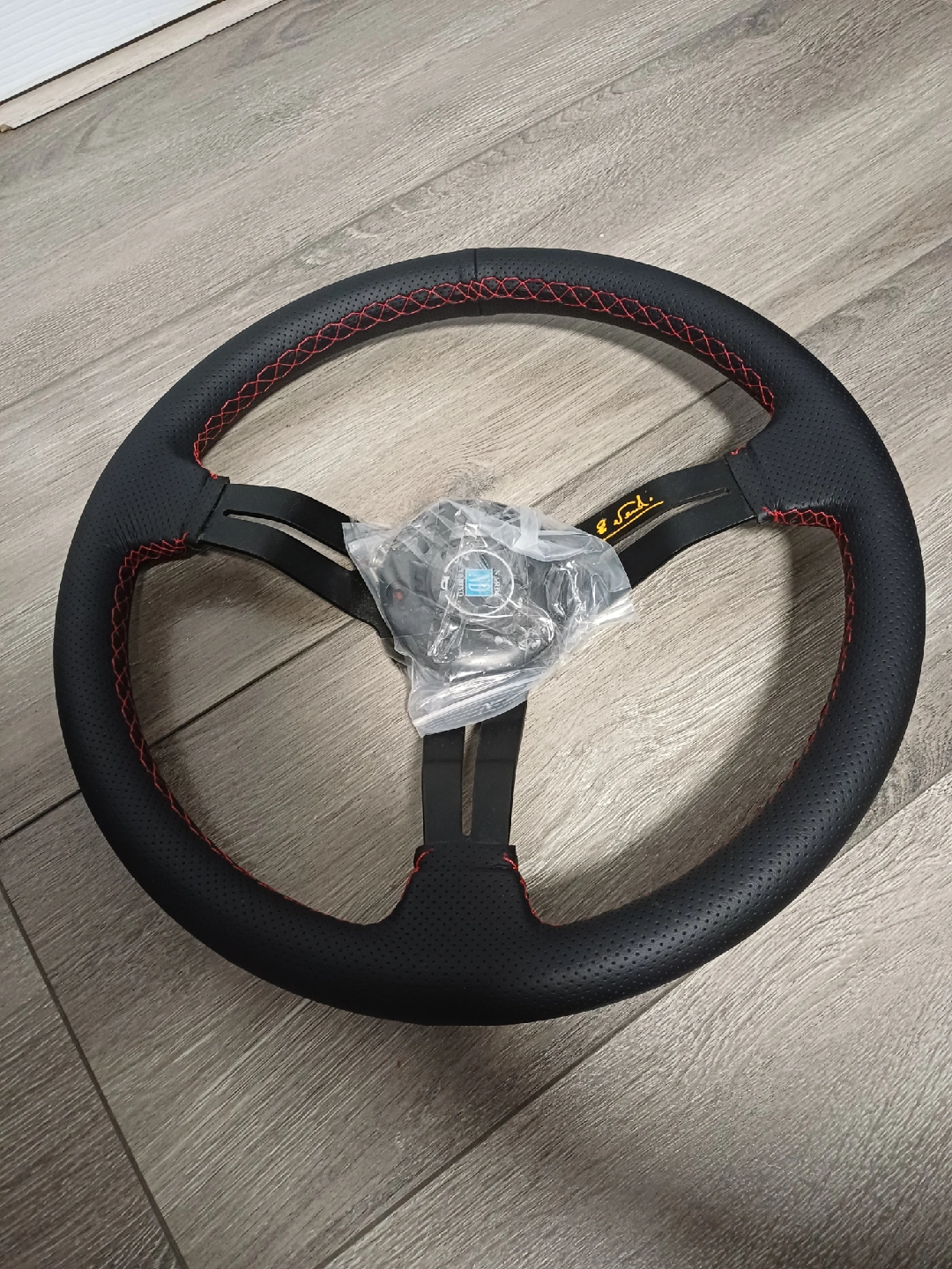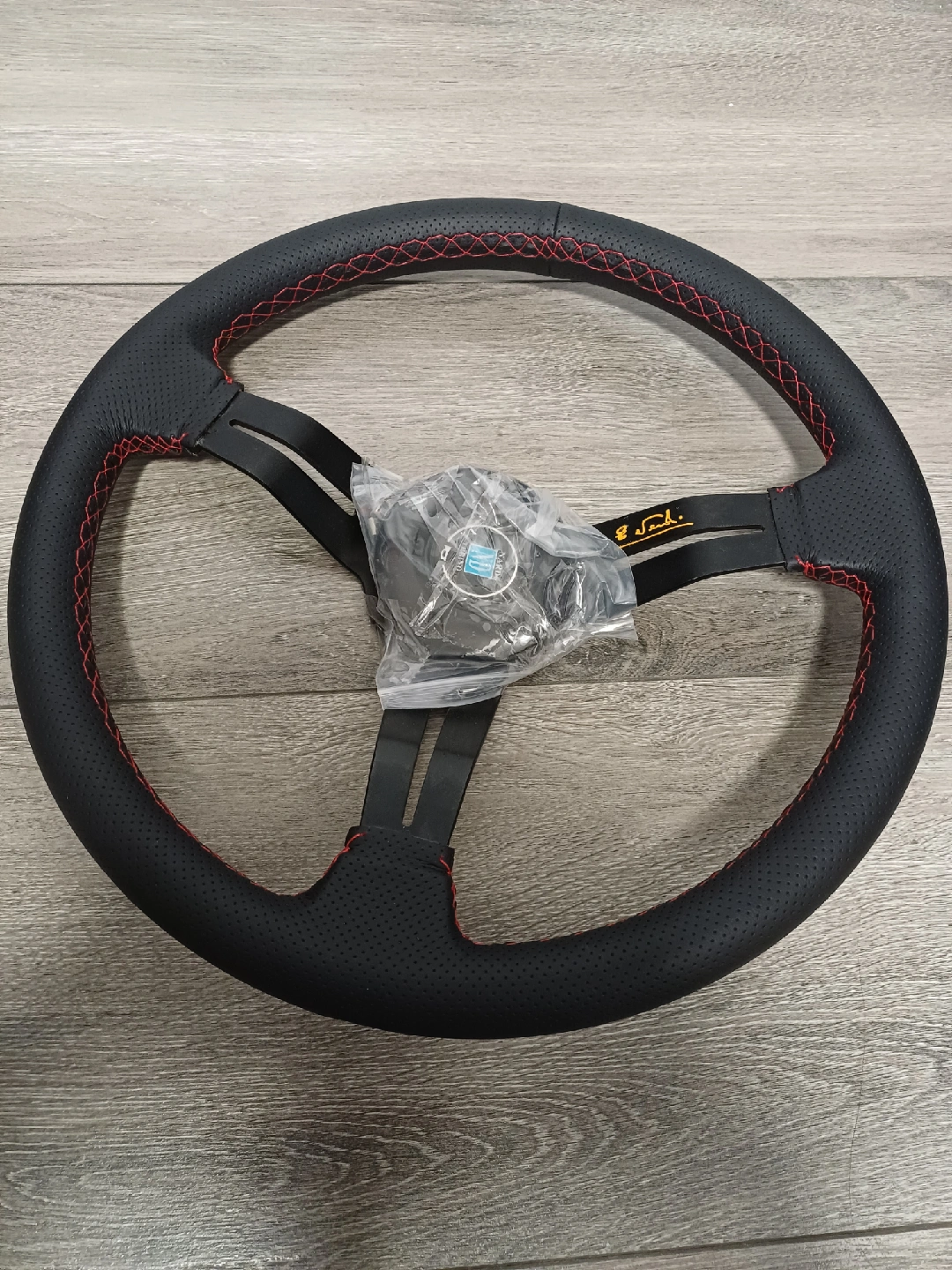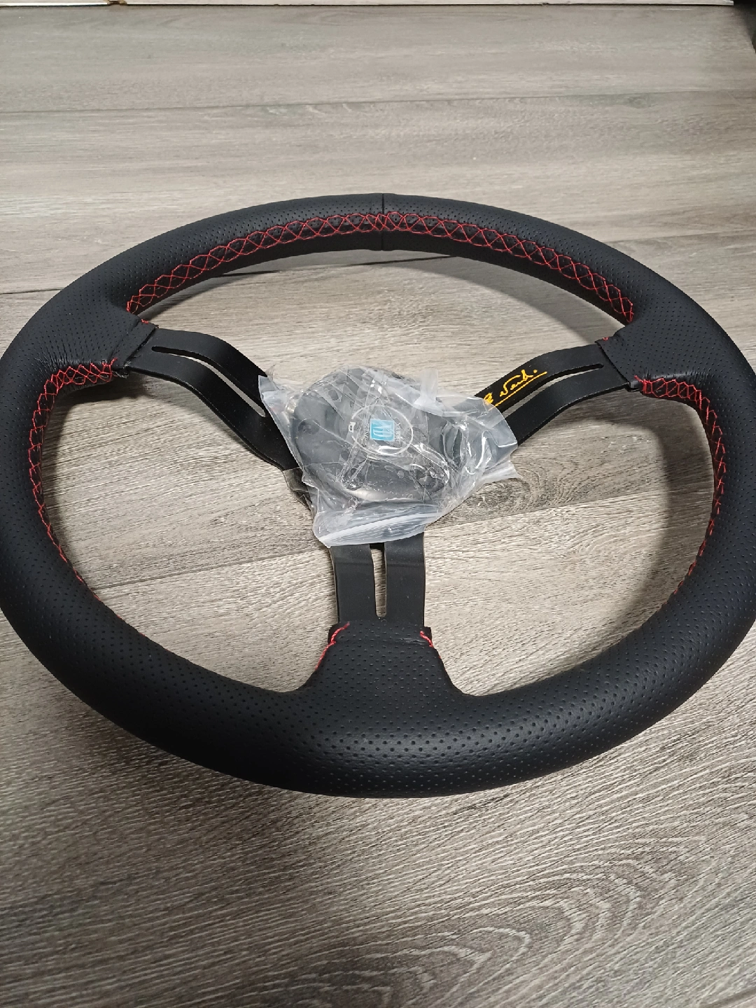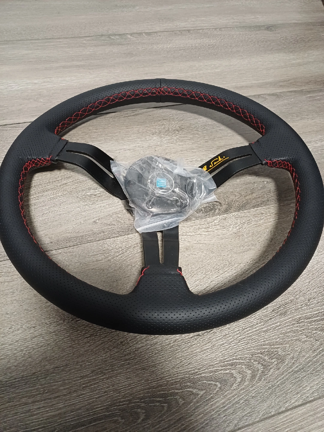 96Selling a brand new... Nardi Torino Universal fit steering wheel in great condition! It features black leather with red stitching, giving it a sporty and stylish look. The steering wheel is in excellent shape and ready to be installed in your car. Perfect for upgrading your driving experience! 350mm (13.78 inches). This Sporty model offers a blend of classic design and modern materials for a performance-oriented feel. Nardi steering wheels are distinguised by their exceptional Italian craftsmanship.