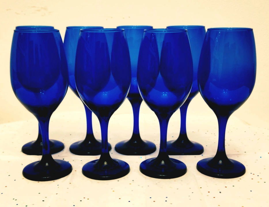 Set of 8 Vintage Cobalt Blue Wine Glasses