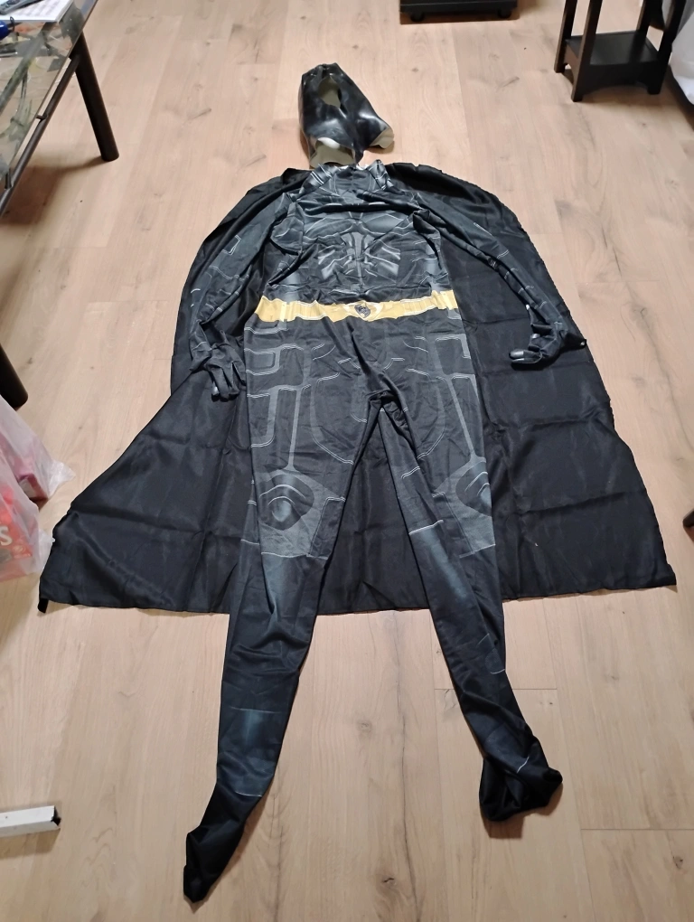 Selling a Batman costume with a mask. It looks like it's in used condition. Please see the pictures for details!
