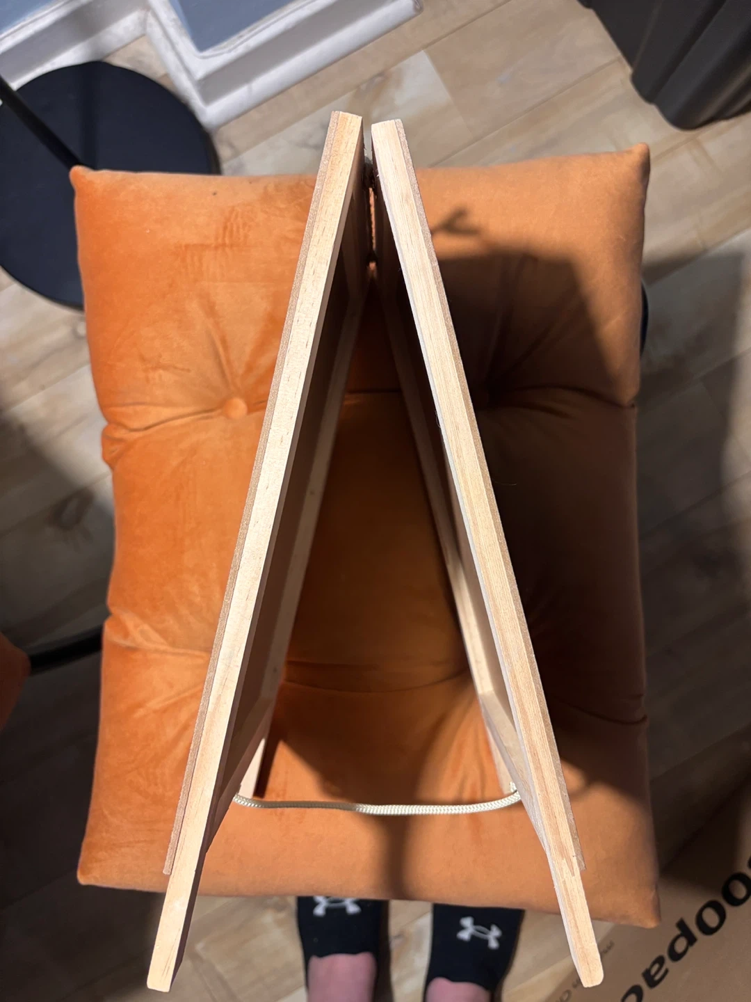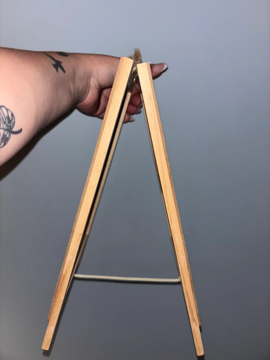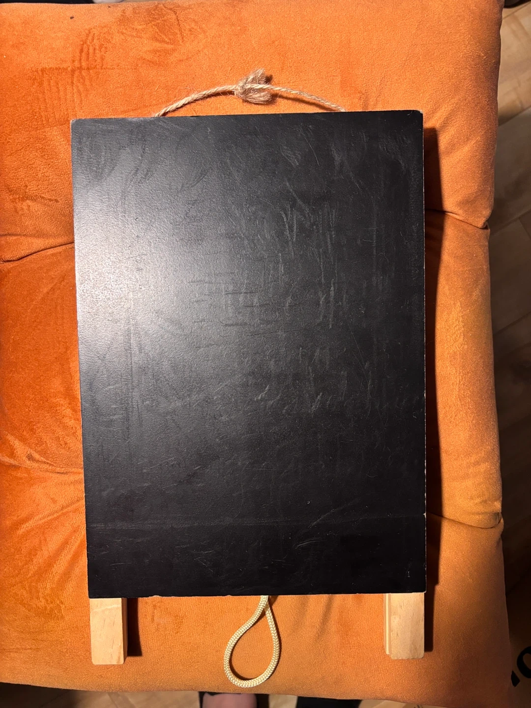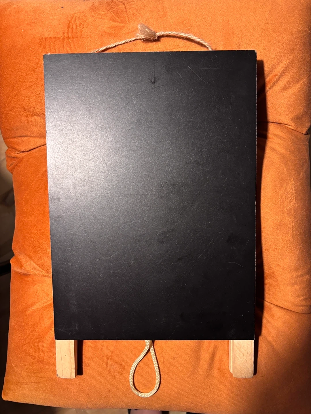 15This is a small chalkboard with a wooden easel stand. It's perfect for leaving notes or displaying small signs. The chalkboard surface is in good condition and the easel is sturdy
