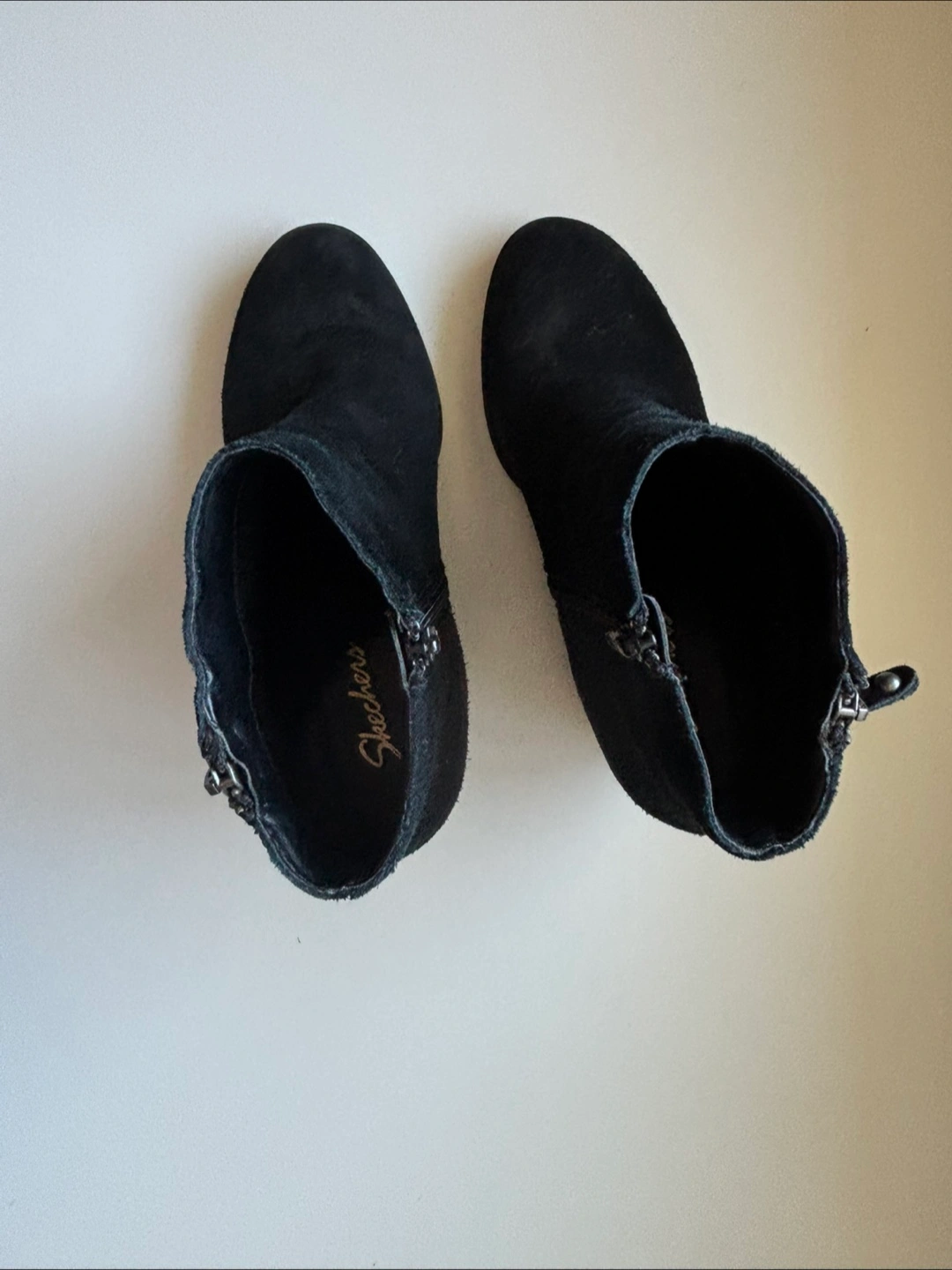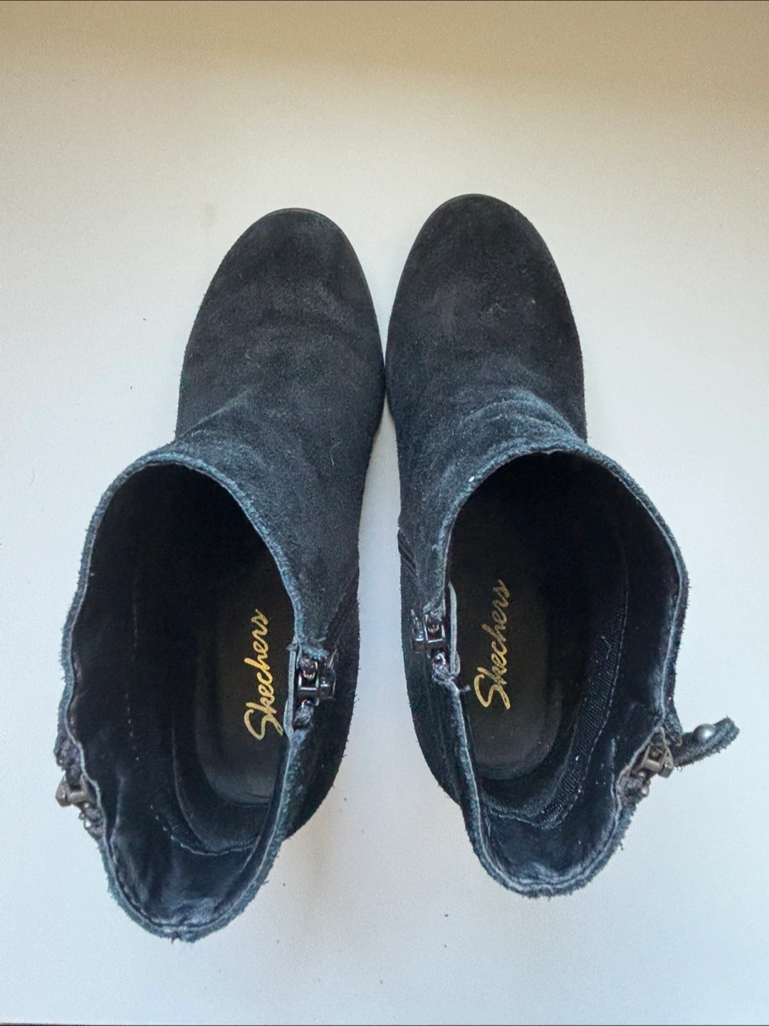 Buy & SellSkechers Black Suede Ankle Boots - Size 7Skechers Black Suede Ankle Boots - Size 7$16Selling a pair of Skechers ankle boots in black suede. They're a size 7. These boots have a stylish look and are perfect for everyday wear!ConditionGoodSize7BrandSkechersWHERE TO MEETCheck LocationView MapSELLERverifiedAddieRanchlands1165 reviews1 chats·1 favorites·29 views