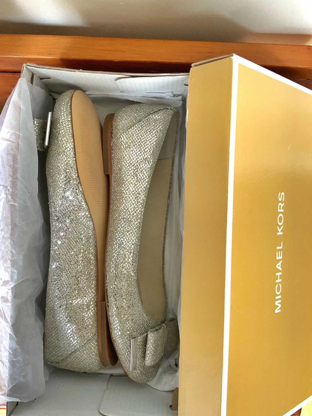 BRAND NEW /NEVER WORN MICHAEL KORS SILVER GLITTER BALLET FLATS
