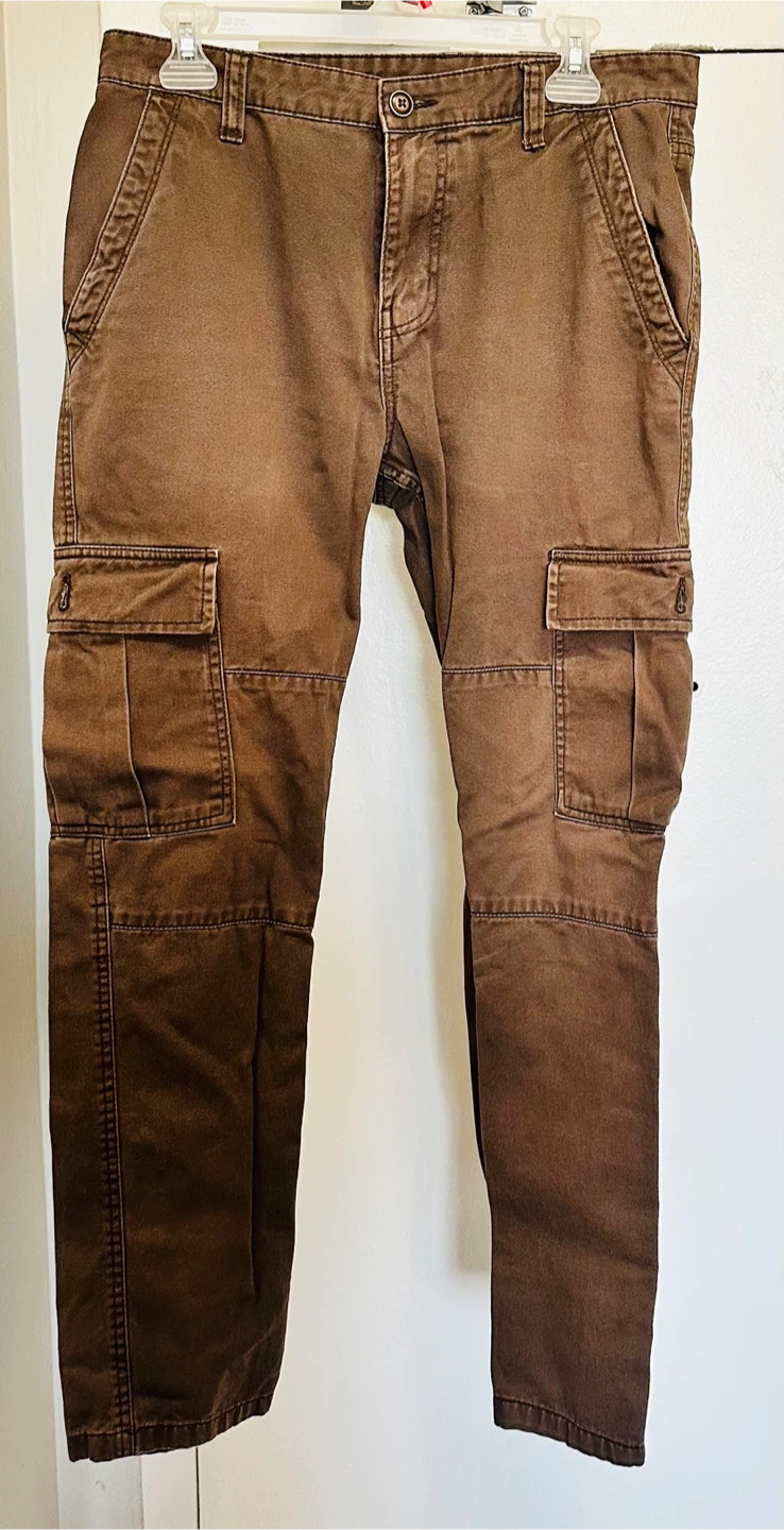A selection of used men's pants in different shades and styles. Perfect for updating your wardrobe! 4 super comfortable office wear formal pants 2 joggers / fall wear 1 cargo Grab them all or as many as you want. 5 DOLLARS each.