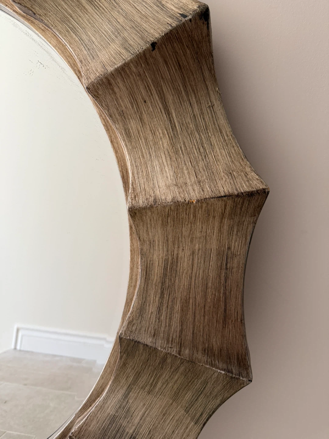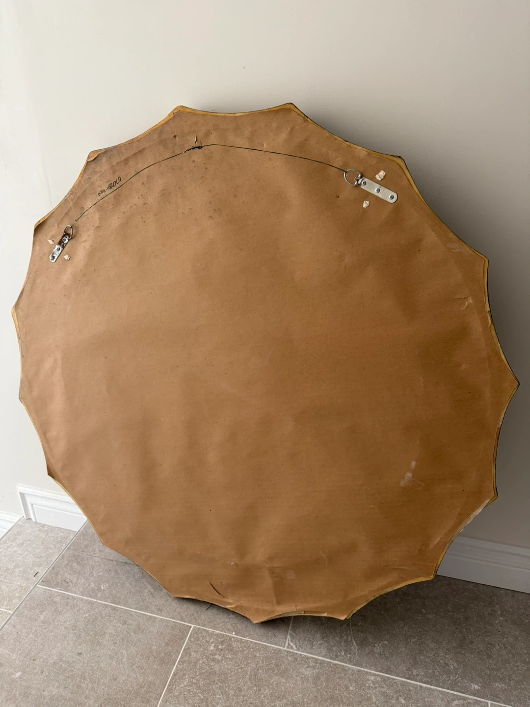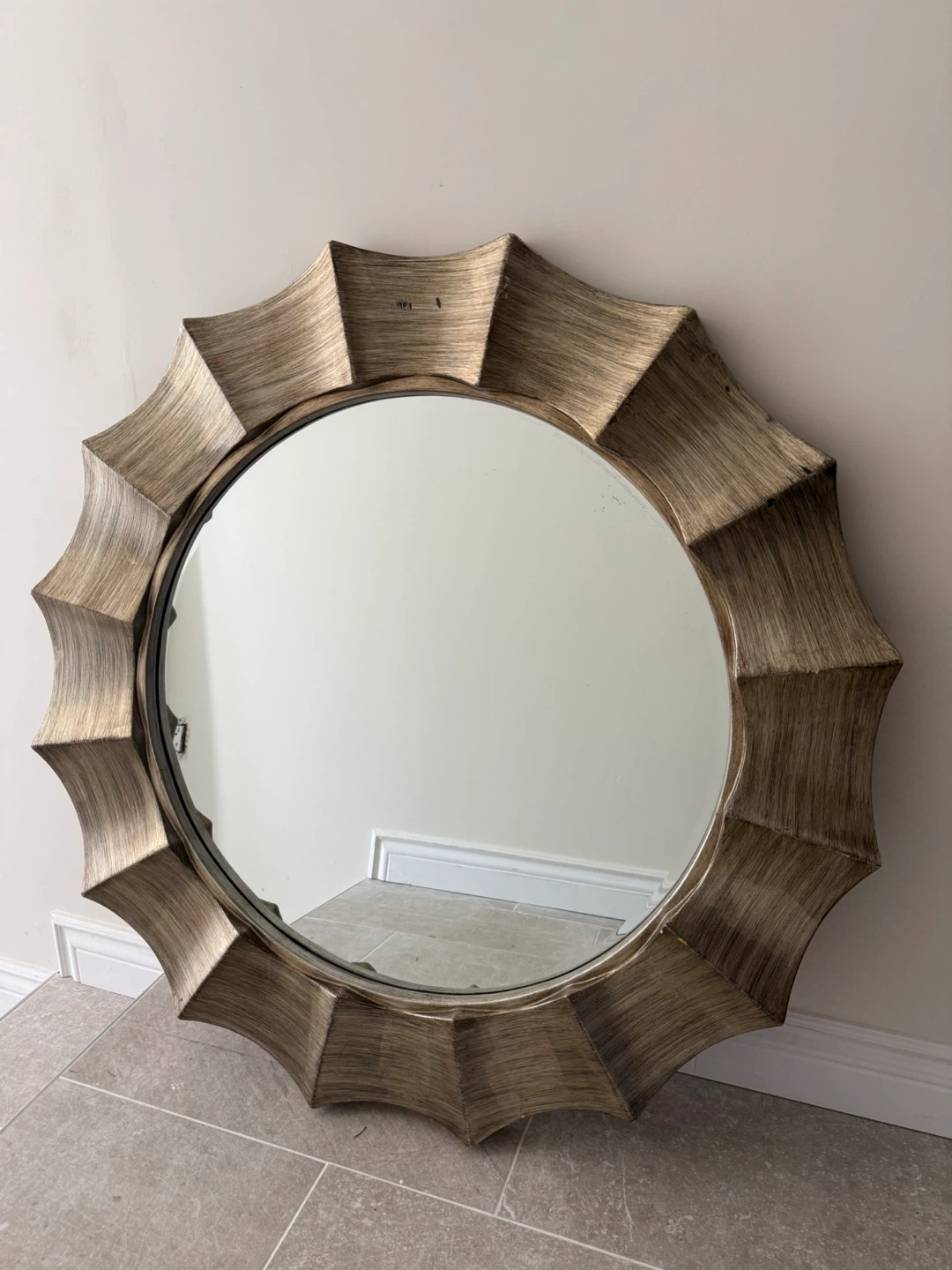 Selling a decorative wall mirror with a unique gold finish. It's in good condition and ready to add a touch of elegance to your space! There are some minor signs of wear, as shown in the pictures, but overall it's a lovely piece