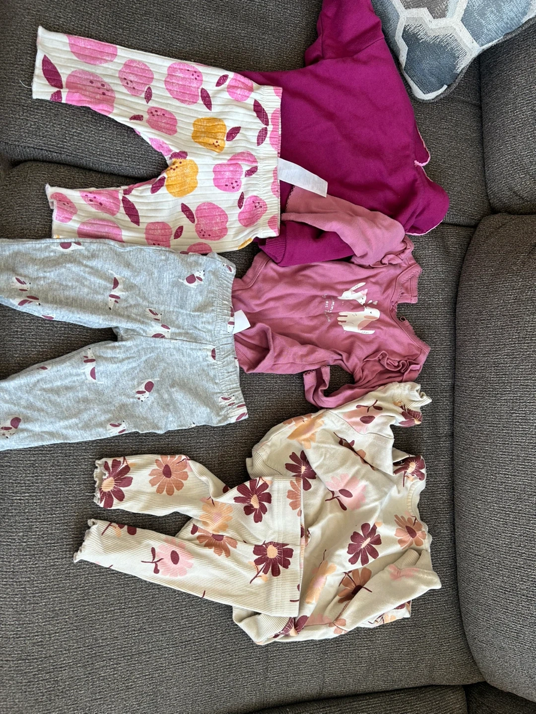 Selling a bundle of baby girl clothes. Includes a mix of tops and bottoms in various sizes. Great for everyday wear!