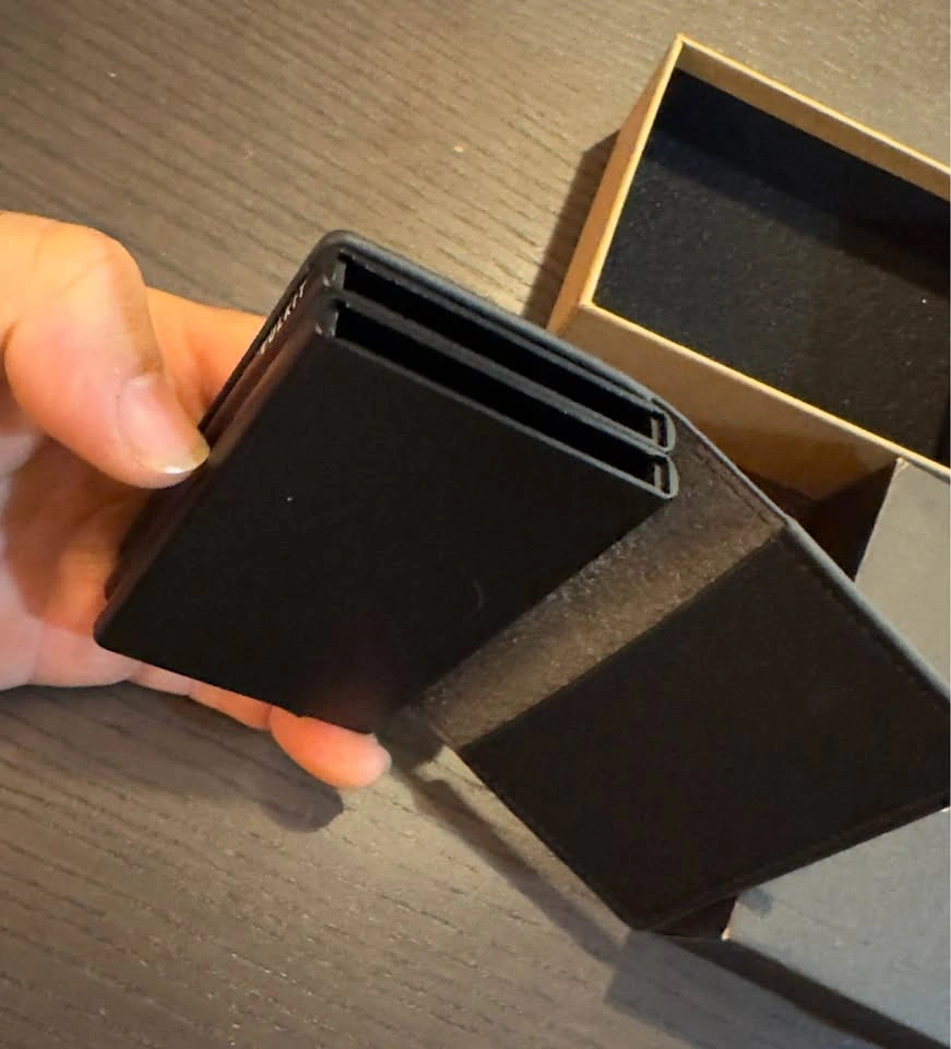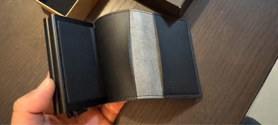 QUICK ACCESS 10 CARDS: slide over the lever the cards pop out in a tiered fashion where you can easily access any of the cards stored in there.