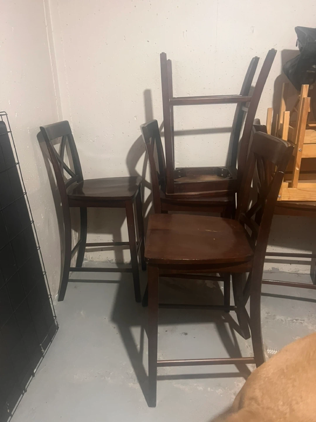 Selling these wooden bar stools. They are in good condition and would look great in any kitchen or bar area. They have a classic design with an X back. Sturdy and ready for a new home!