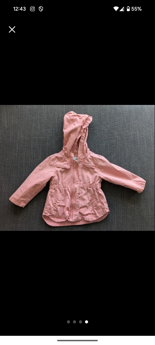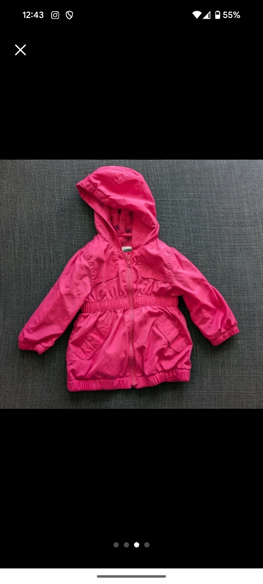 A cute and practical Old Navy hooded jacket for your little one! This jacket is in great condition and perfect for layering during those cooler days. It features a zip-up front and a cinched waist for a comfortable fit. The pink colour is adorable and will match with everything!