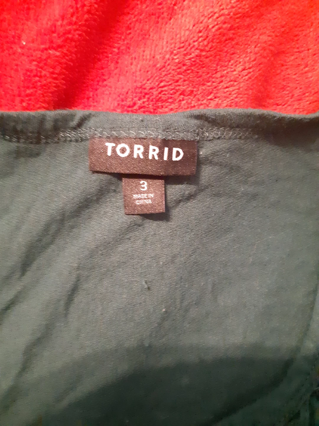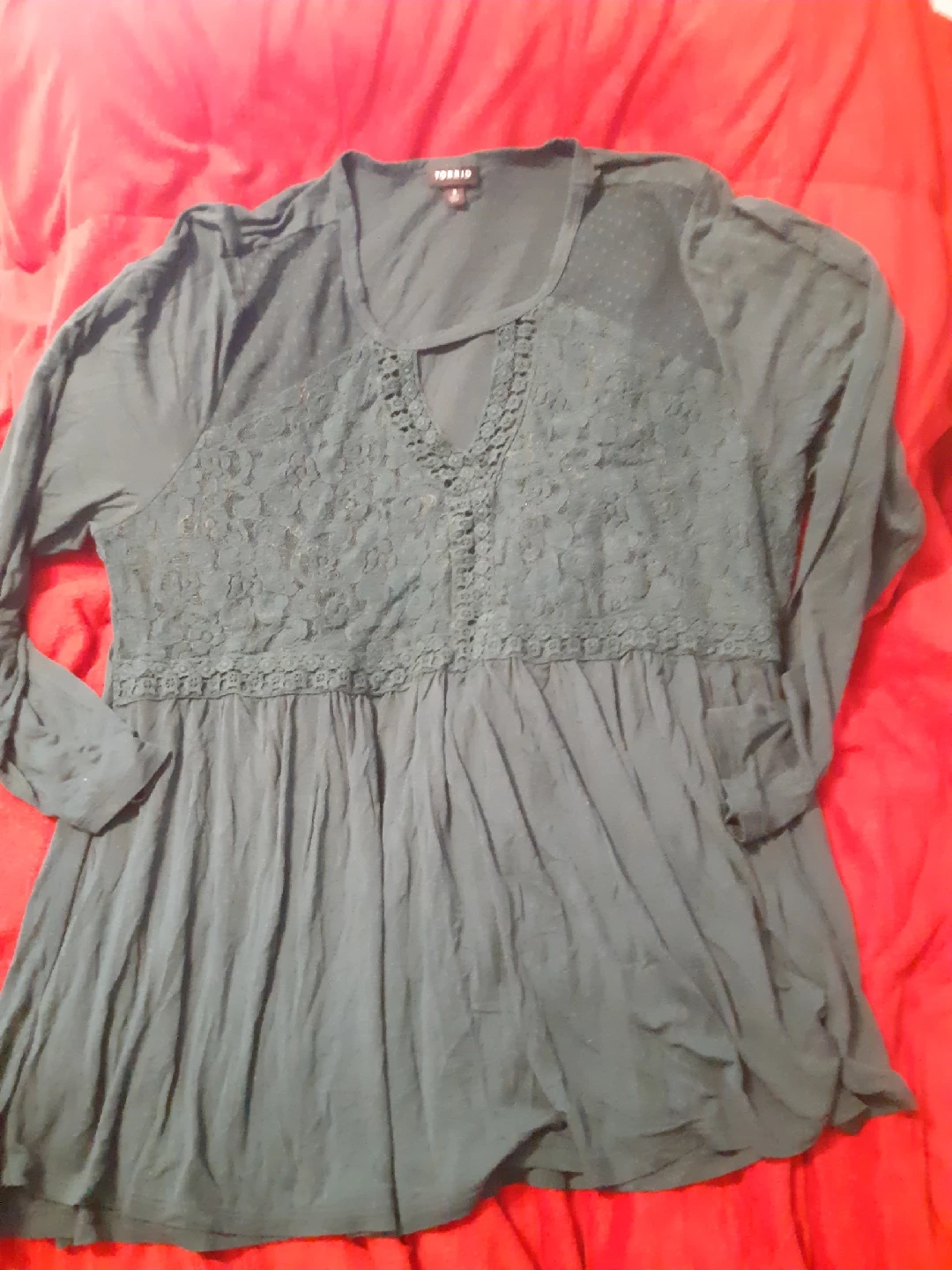 Selling a Torrid dark green top with lace detailing. It's a size 3 and in great condition! Perfect for adding a touch of elegance to your wardrobe