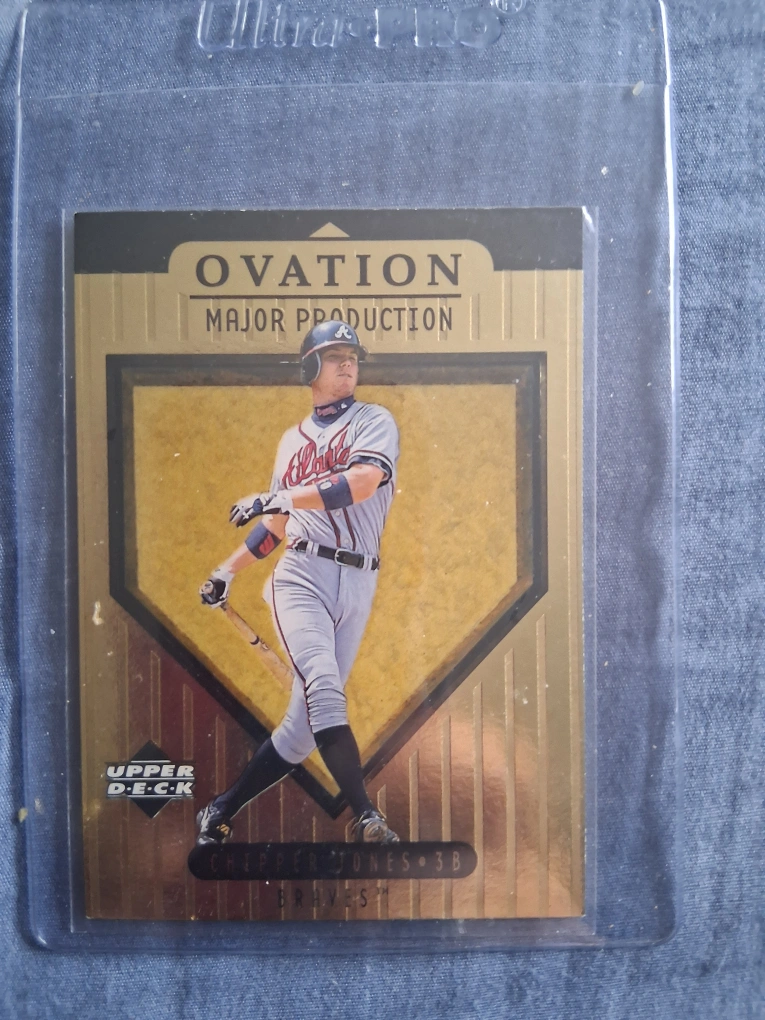 Selling a Chipper Jones 3B trading card from Upper Deck's Ovation Major Production series. A great addition for any baseball card collector!