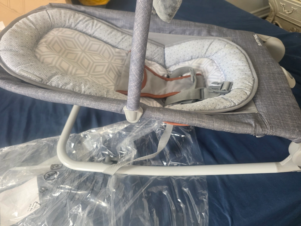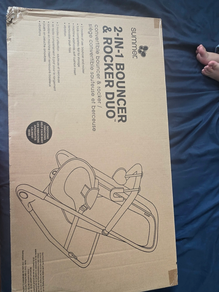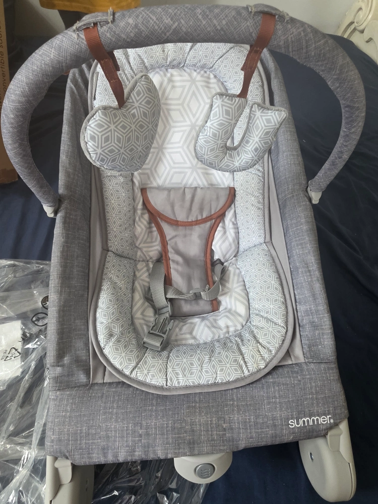 Selling a Summer 2-in-1 Bouncer & Rocker Duo. It's in excellent condition and comes with the original box. This convertible bouncer and rocker easily switches between the two modes, offering soothing vibrations to help calm your baby. Perfect for little ones!