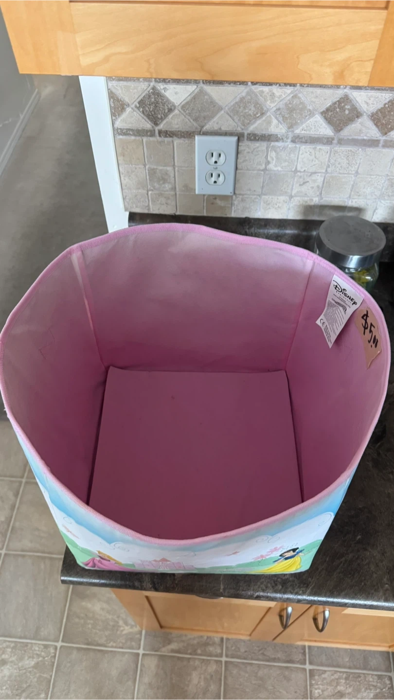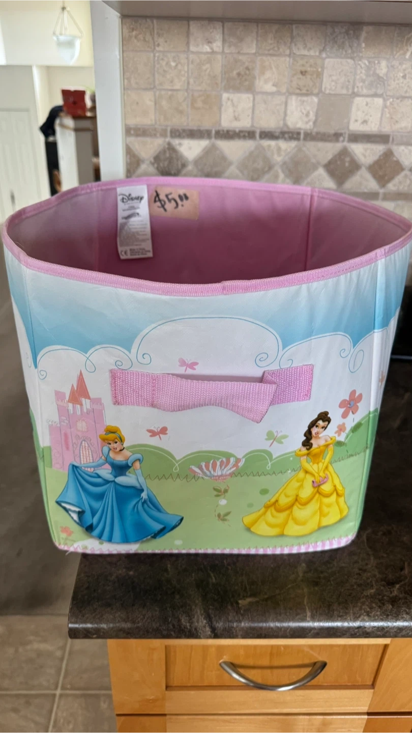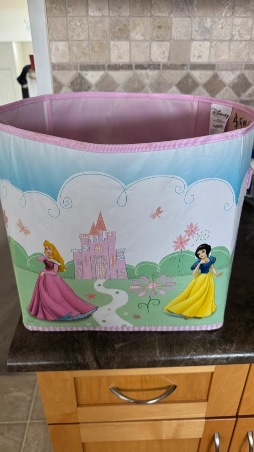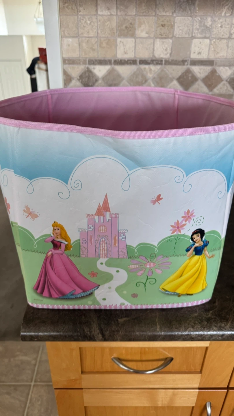 Cute Disney Princess storage bin, perfect for a kid's room or playroom! Features Aurora, Snow White, and Belle