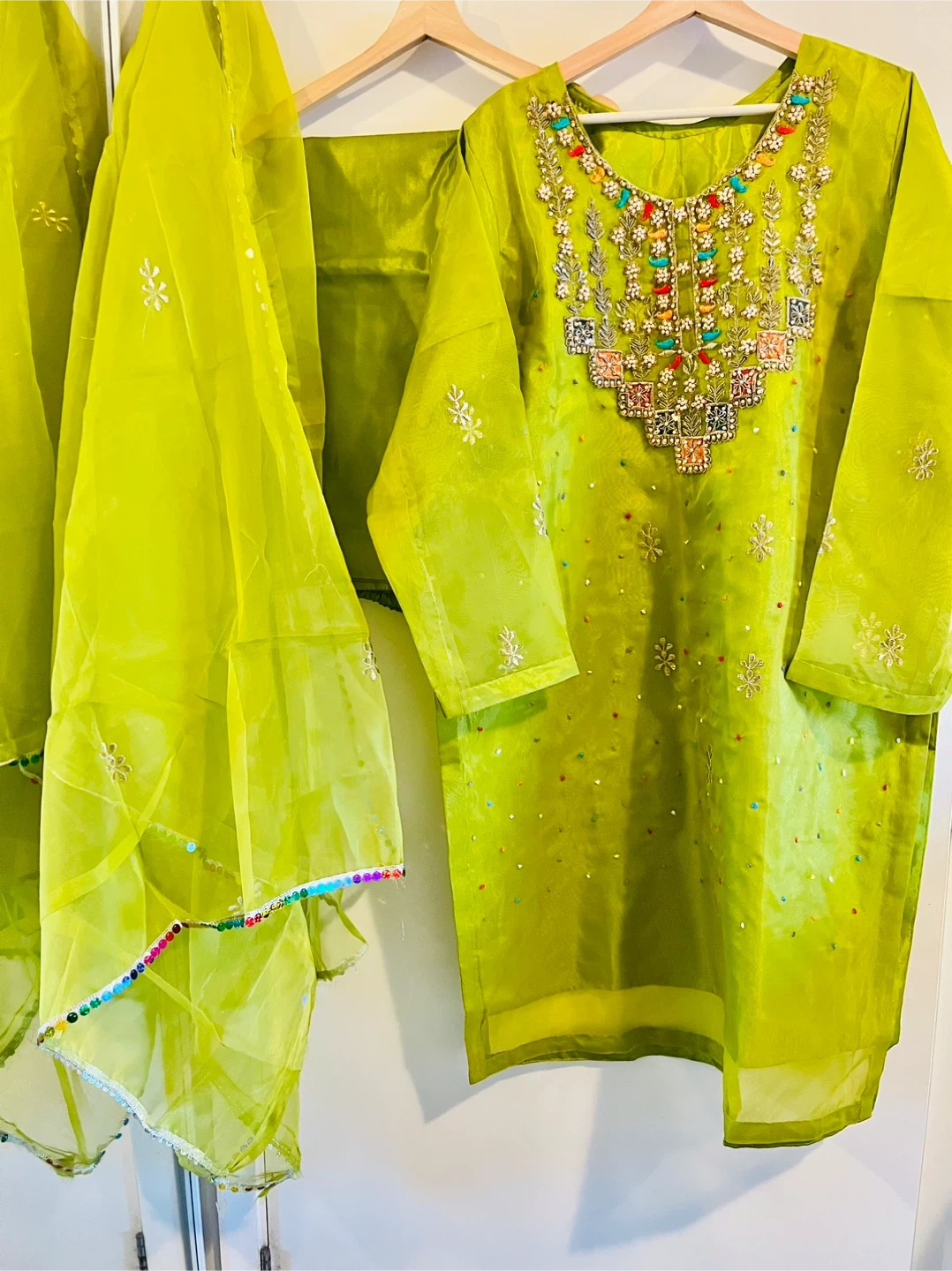 3pc suit new $30 firm Size xlarge only Includes organza shirt, silk palazzo, with organza dupatta Pickup is Erinmills and Eglinton, Mississauga. Smoke and pet free