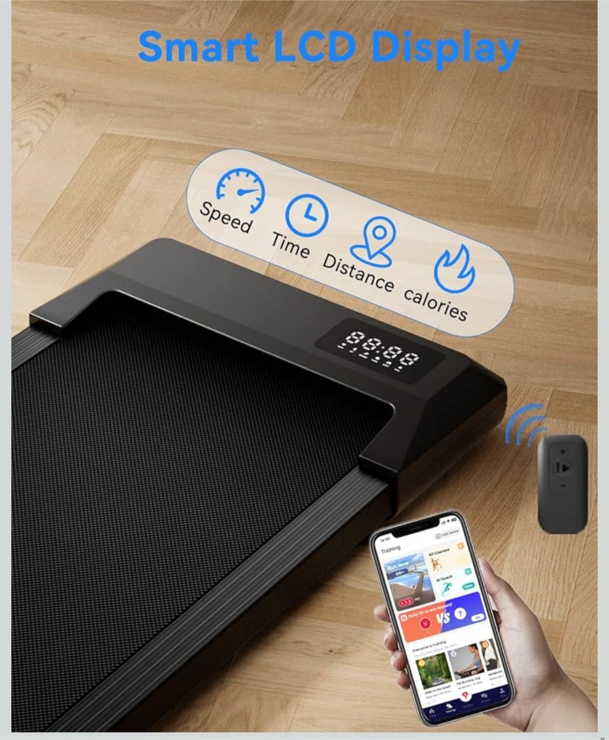 This folding treadmill features a powerful max 2.5HP motor with lower noise. It has a 5-layer anti-slip belt for less knee impact and shock absorption.
