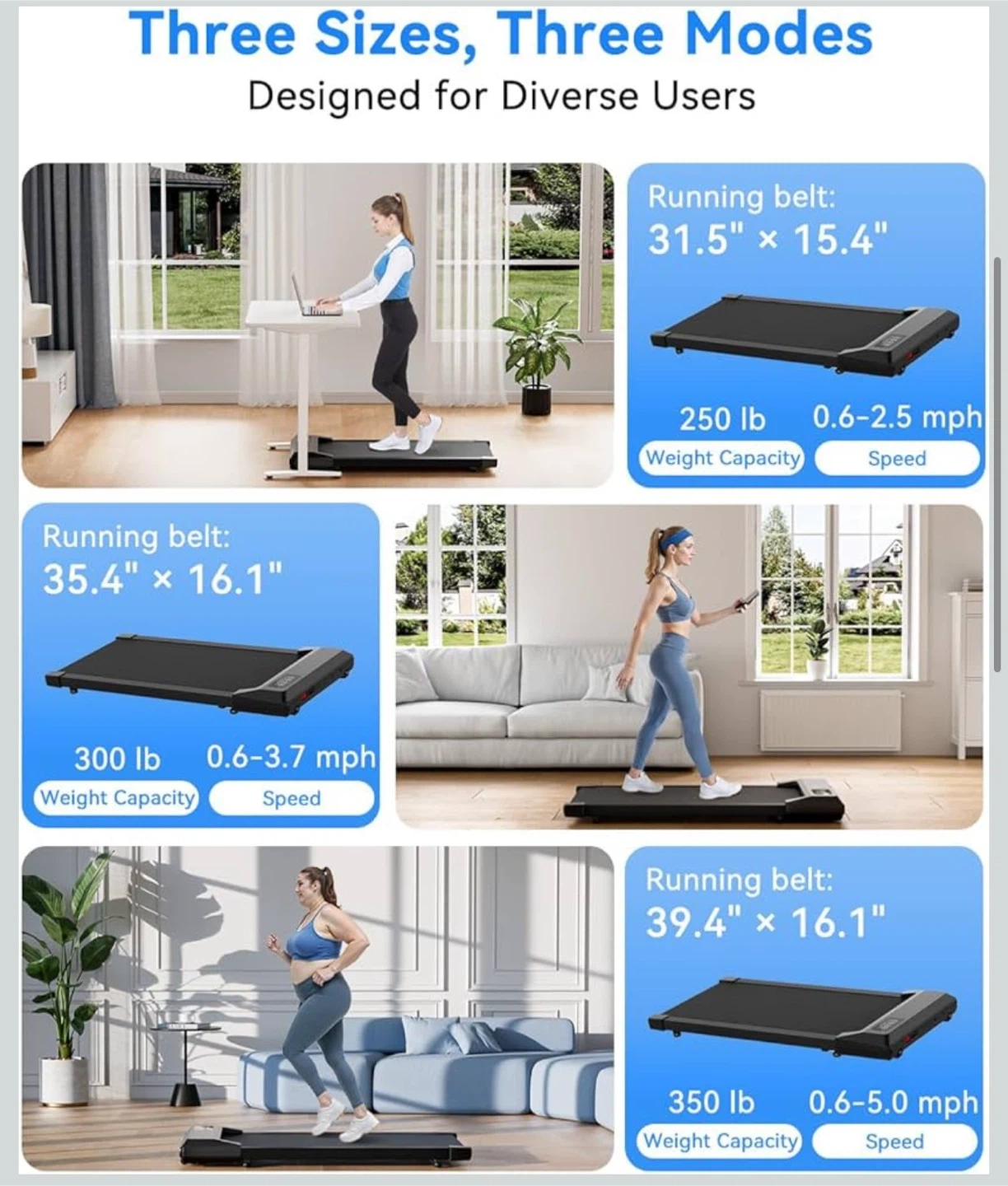 - Running belt: 31.5" x 15.4"