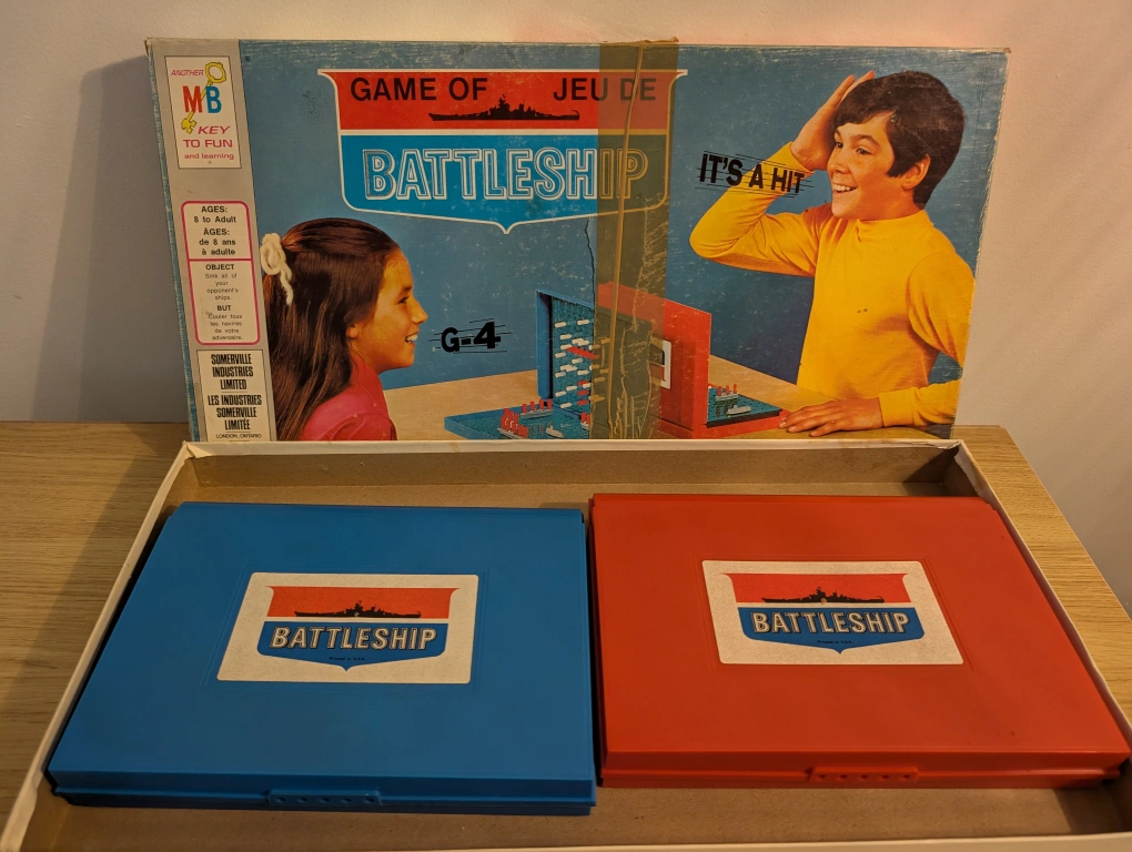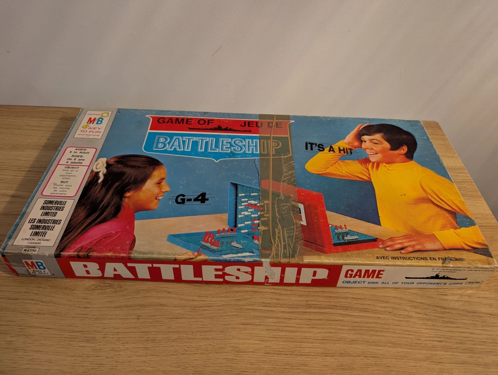 Vintage Battleship game by MB Games! Box shows some wear from age, but all pieces are included and in great shape for some old-school fun.