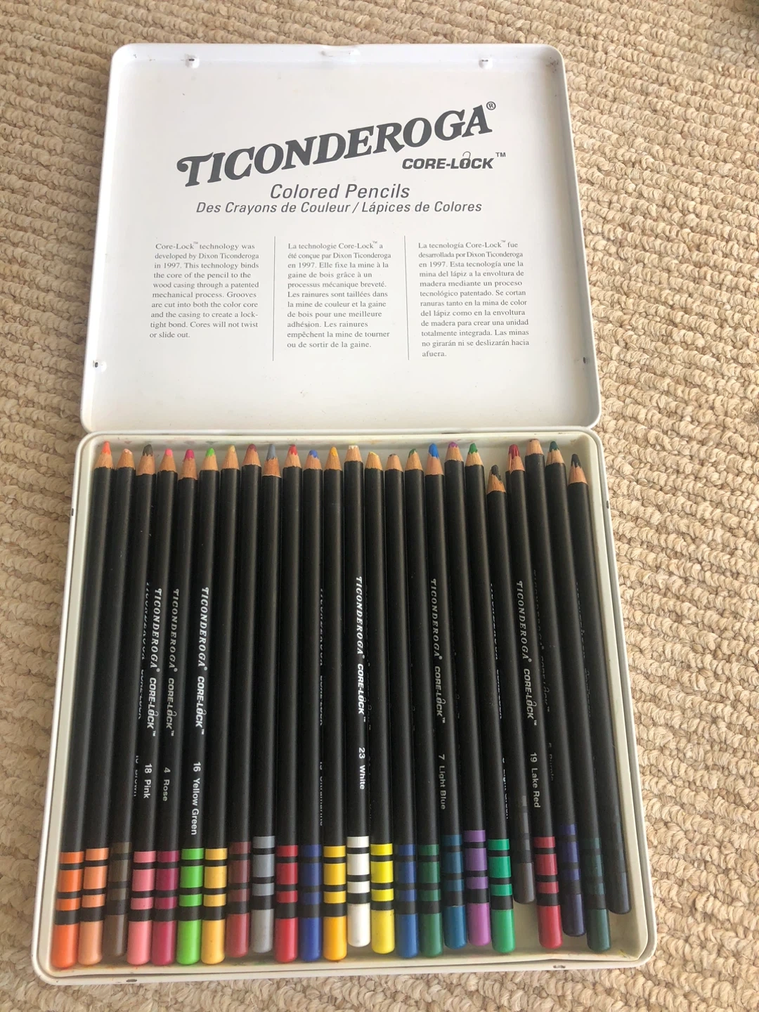 419Selling a set of Ticonderoga Core-Lock colored pencils. This set includes 24 fine artist quality colored pencils.