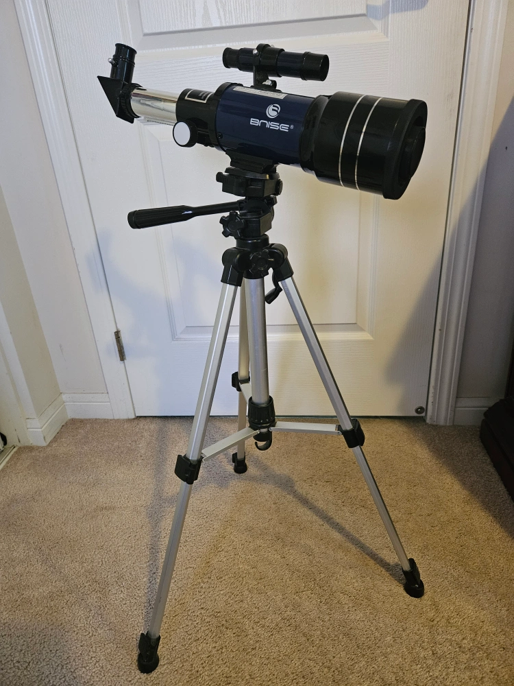Looking to sell my BNISE telescope! It comes with its tripod, making it easy to set up and start stargazing. It's in great condition and ready for a new home