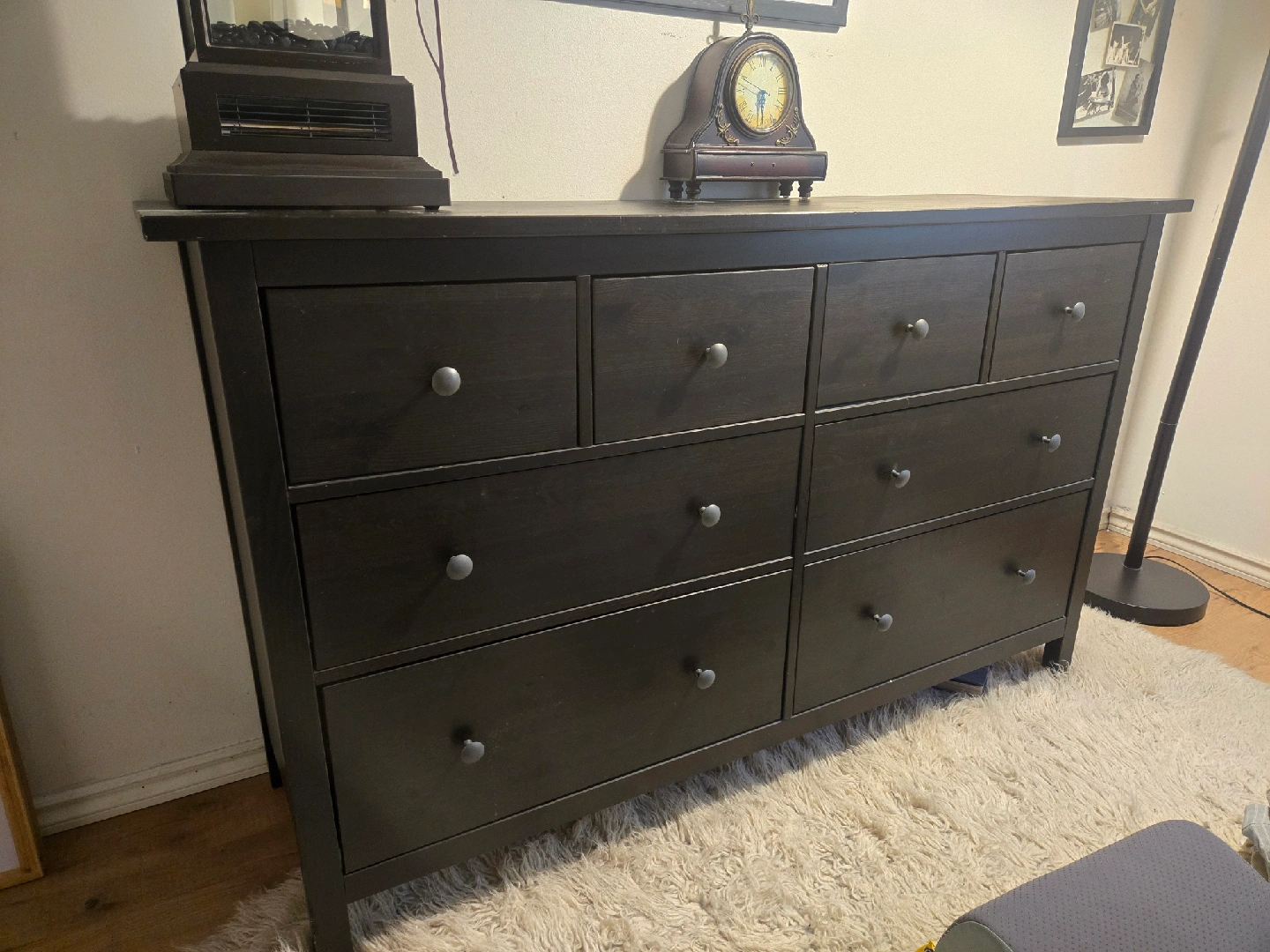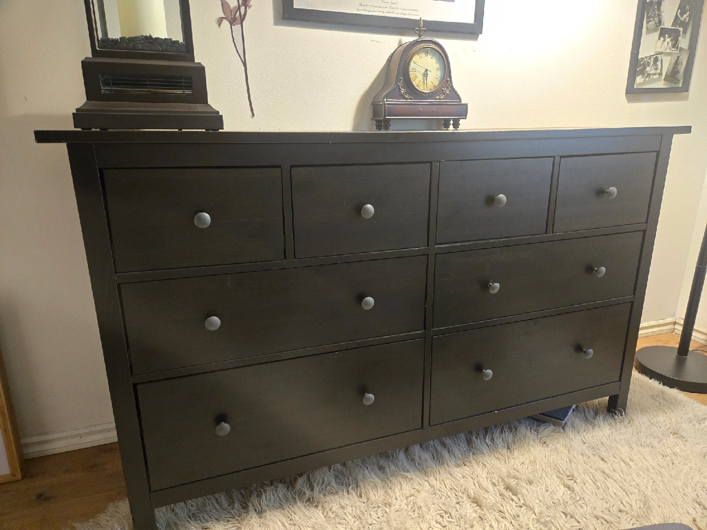 Selling a gently used IKEA Hemnes dresser in dark brown. It's a great storage solution and has been well taken care of. Perfect for any bedroom!