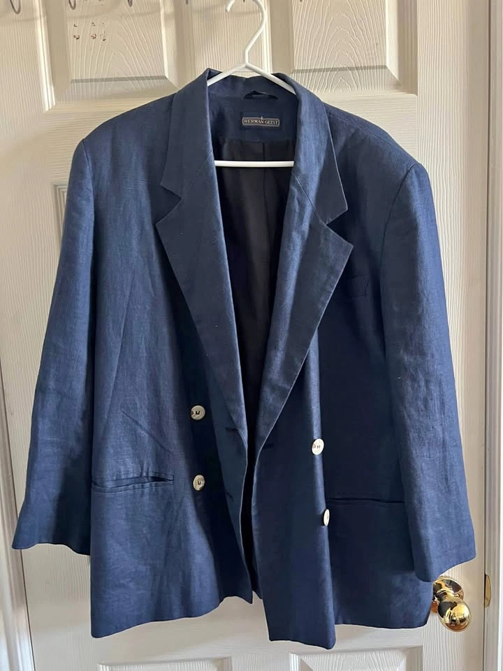 Light & Flowy Herman Geist Blazer to dress up or dress down during warmer weather. Amazing structure in shoulder pads Size 42R
