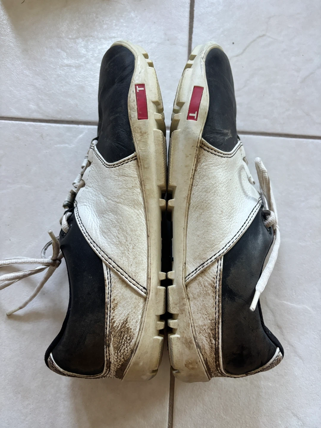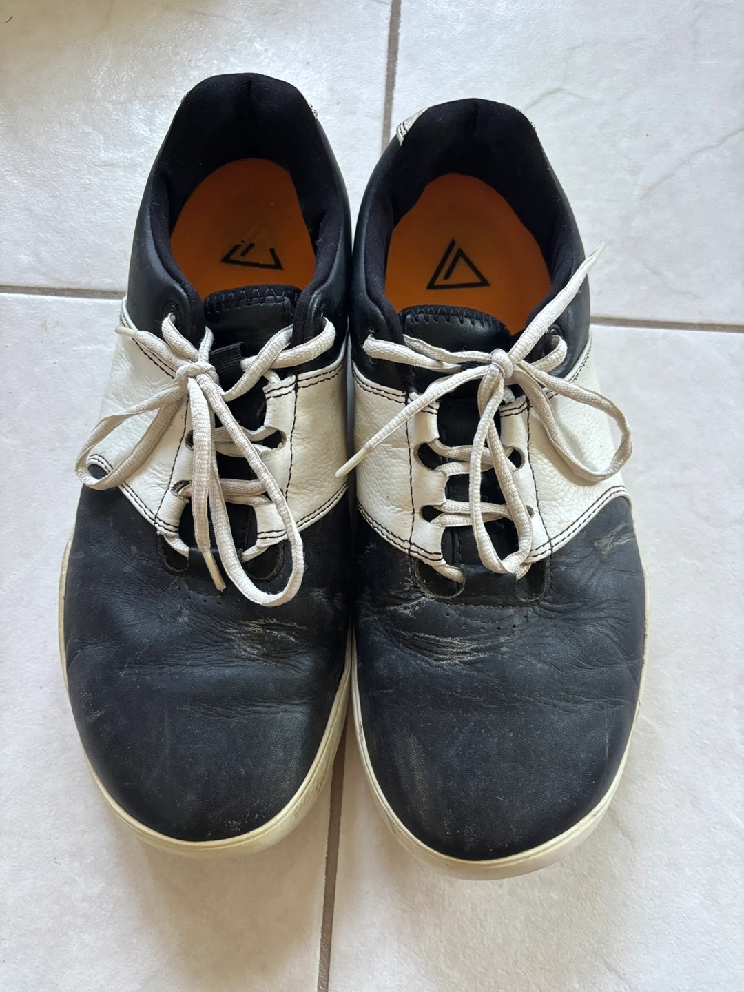 Selling a pair of TRUE linkswear golf shoes in black and white size 9. They show signs of use, as you can see in the pictures, but still have lots of life left in them! Great for hitting the links.