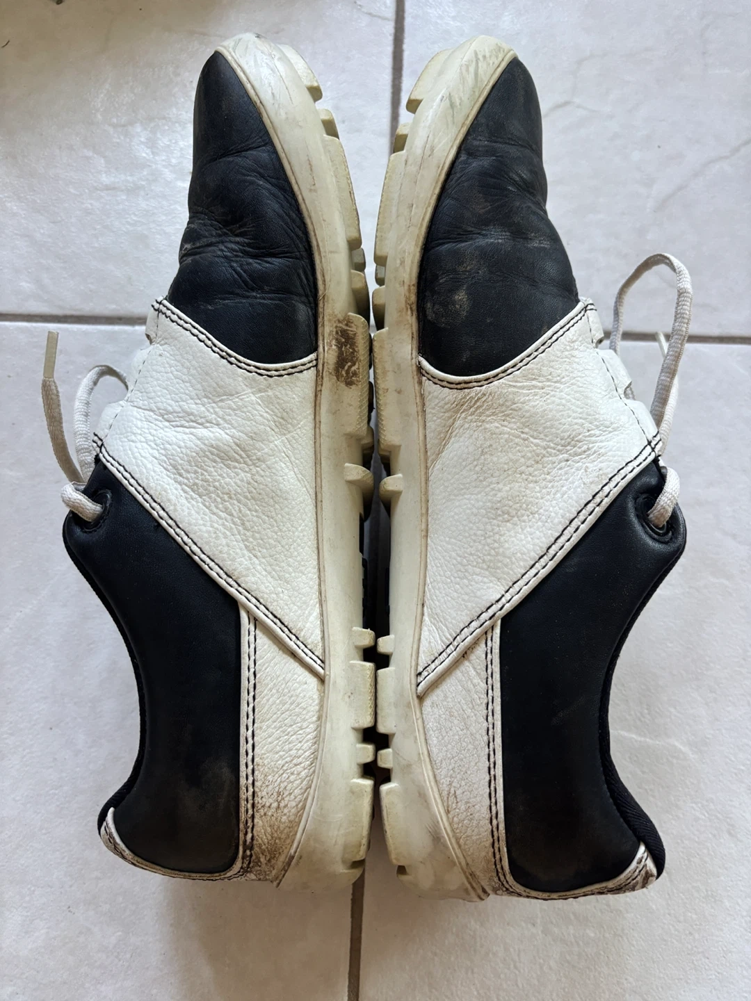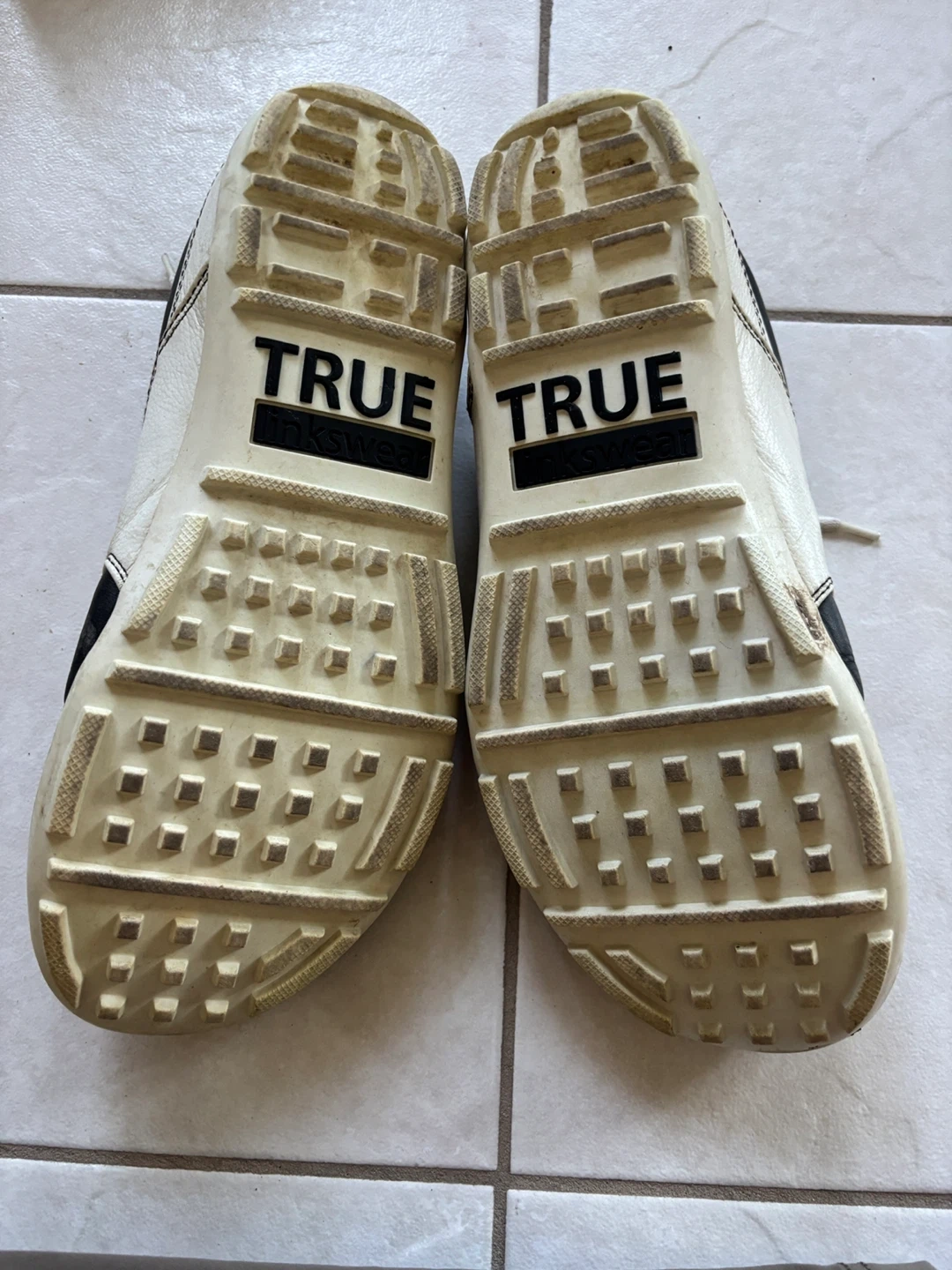 Selling a pair of TRUE linkswear golf shoes in black and white size 9. They show signs of use, as you can see in the pictures, but still have lots of life left in them! Great for hitting the links.