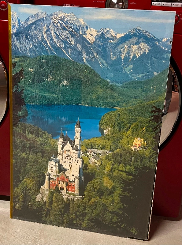 15Castle poster. Neuschwanstein in the Black Forest, Germany. Medieval-style castle. 24x36”. With plexiglass front and cardboard back with hangers but no frame. Great wall art for medieval and fantasy fans, historians, travel fans, students, and more. $15. Near the Burlington/Oakville border.