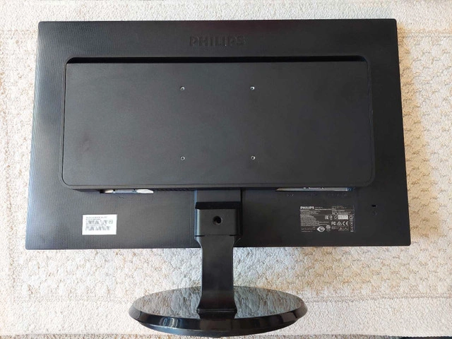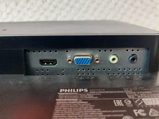 Philips 24" Full HD 1080p HDMI Monitor. Model: 246V5LHAB/27. 24 inches Widescreen LED Monitor Native Full HD 1920 x 1080 Resolution Fast 1ms response time. Built-in speakers HDMI and VGA/PC audio input Headphone out. Comes with power cord and HDMI cable. Works well. Can power it on to show you when picking it up.